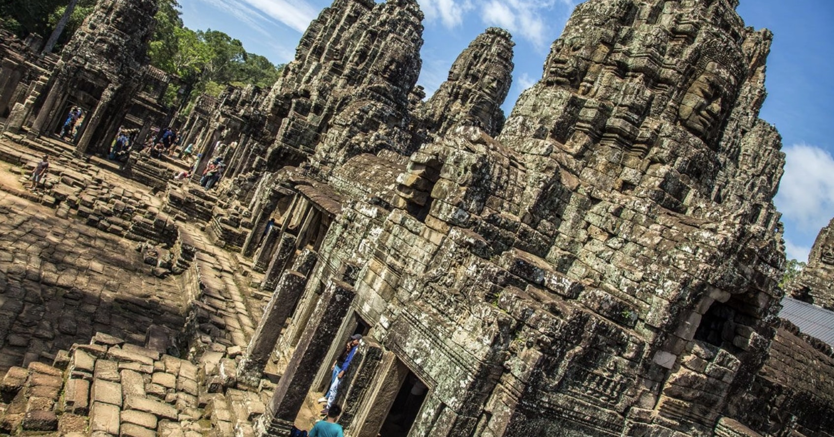 探索美丽的巴戎寺,该寺以其塔楼上刻有许多神秘的面孔而闻名。