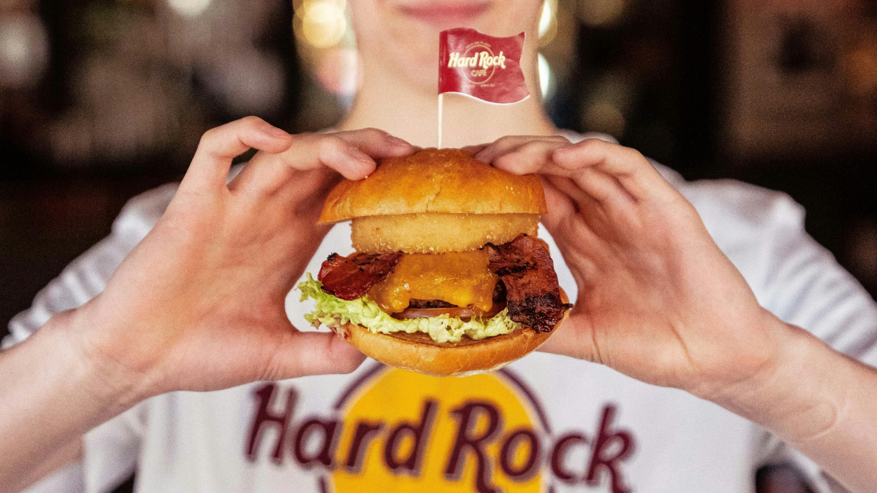 猫王艾维斯普莱斯利(Elvis Presley) 的夹克、弗雷迪墨丘利(Freddie Mercury) 的西装和斯汀(Sting) 的贝斯吉他都是慕尼黑硬石咖啡馆完美的谈话开场白!当您等待用餐时,请猜测这些摇滚历史上的标志性作品在拍卖会上可能会卖多少钱。周围环绕着传奇纪念品,尽情享用原创传奇汉堡——美国经典口味。这款丰盛的汉堡采用黑安格斯牛排肉饼、烟熏培根、融化的切达起司、新鲜生菜、藤熟番茄和脆皮洋葱圈,搭配清爽的软性饮料。当您沉浸在摇滚氛围中时,这是终极的摇滚用餐体验!