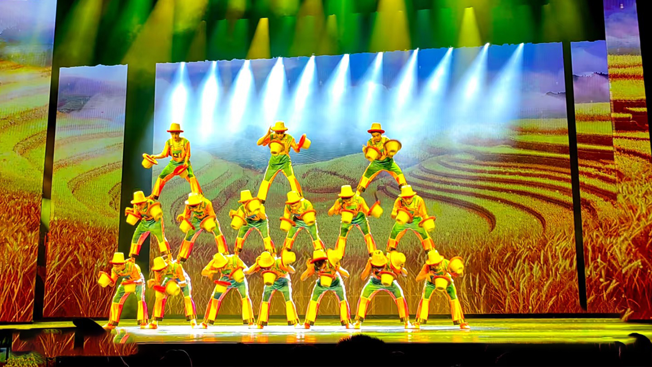 红剧场演出节目单:开场秀,集体钻圈,高椅,蹬鼓,顶碗,皮吊,集体草帽,车技,双人滚杯,转碟,飞车。 注:具体演出节目以现场为主!