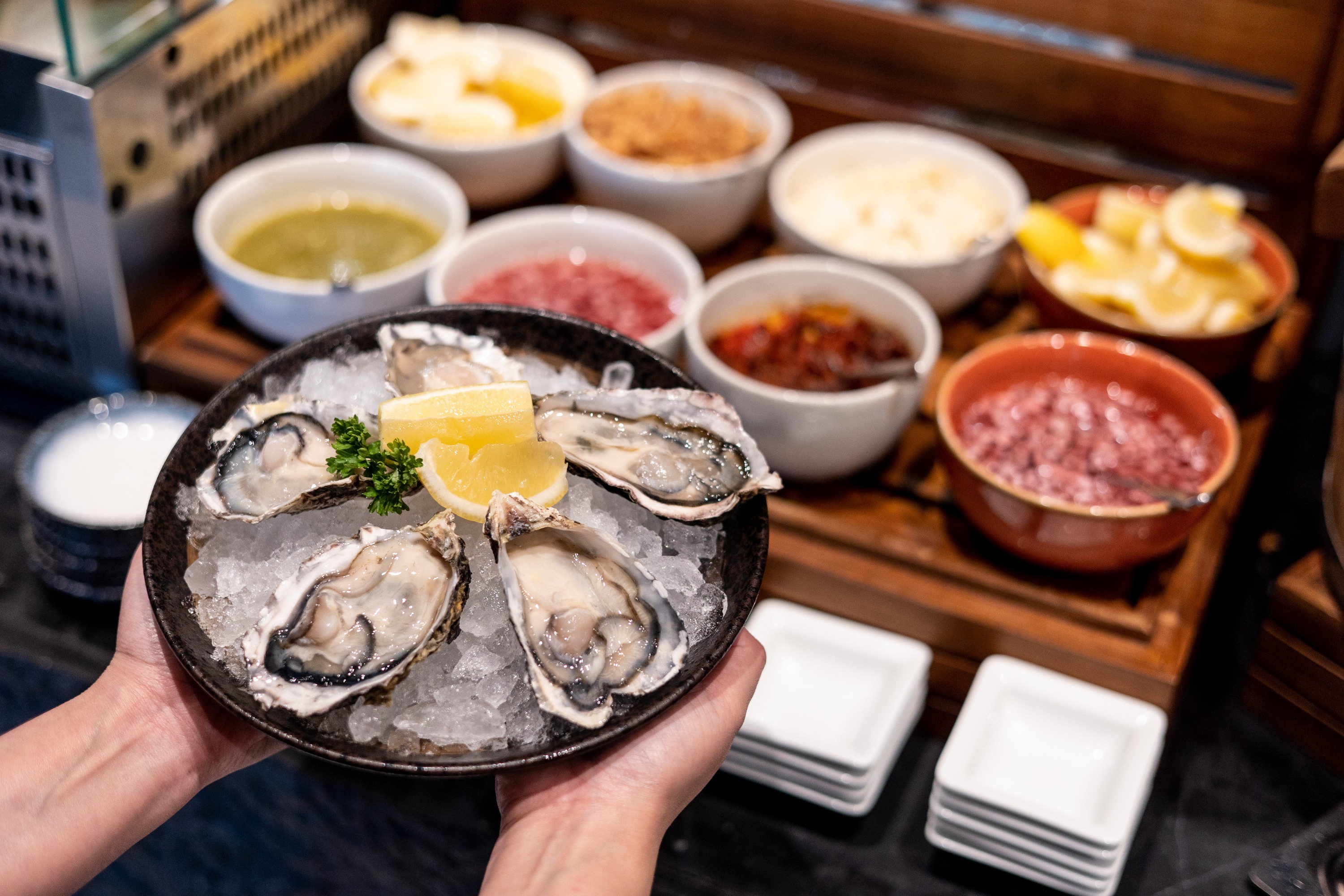 当您探索每个车站时,您会因时令特色菜、丰盛的雕刻站和精心摆盘的菜肴而感到高兴。开放式厨房概念增强了温馨活泼的氛围,营造出一种社交和身临其境的用餐体验 - 非常适合家庭聚会、浪漫之夜或庆祝晚宴