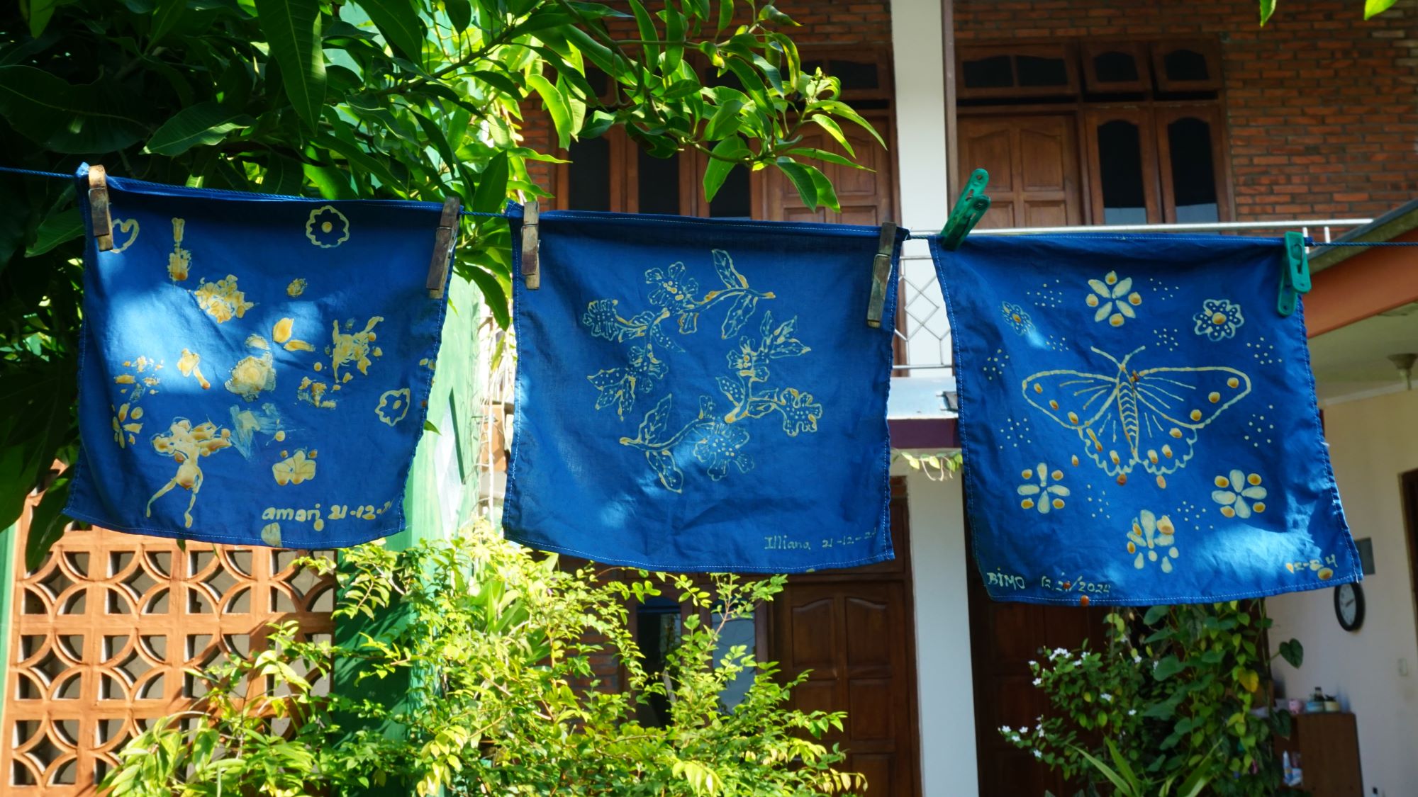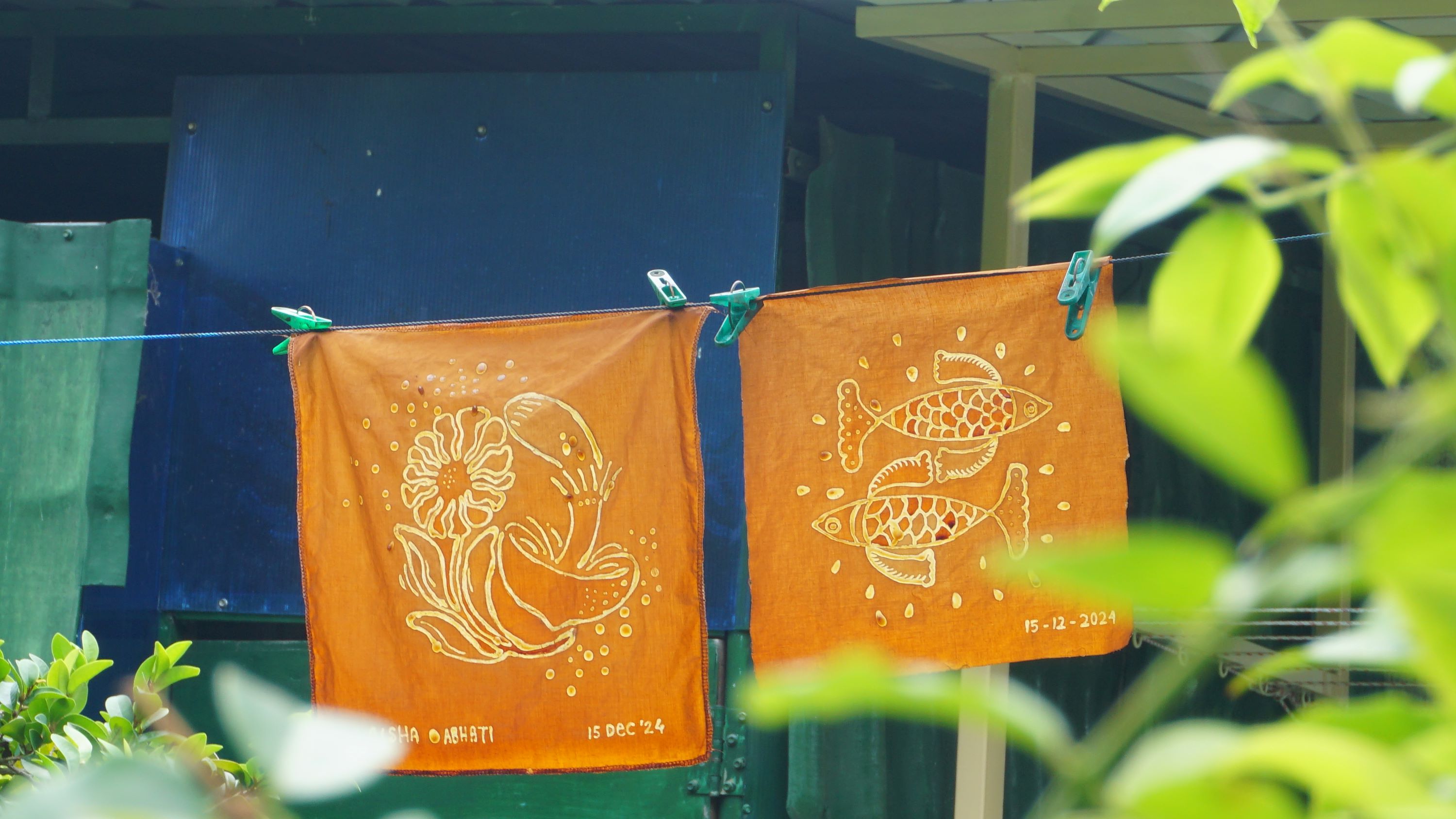 用天然染色体验制作蜡染的结果