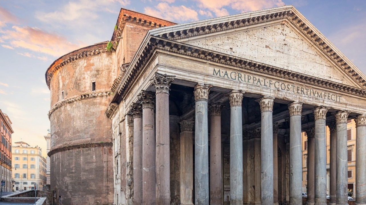 万神殿令人惊叹的圆顶和圆形天窗捕捉阳光,照亮其古老的宏伟