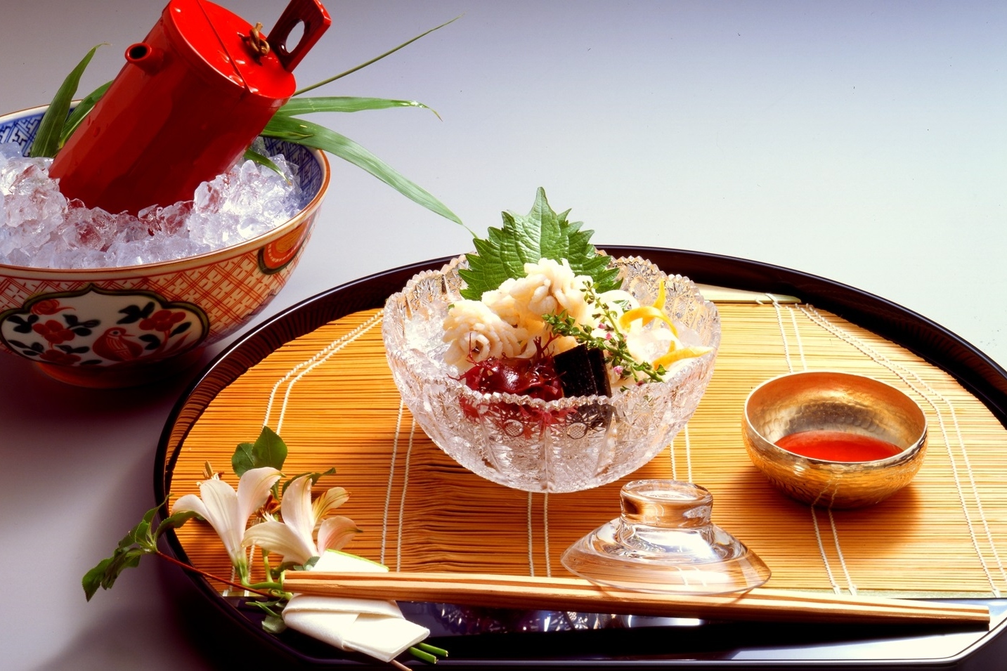 美浓吉,作为江户时代京都奉行所指定的八个鲜鱼饭店之一,始建于1716年。至今依然在京式料理行业创造着佳绩。当您品味这家已有300年历史的京都料理老店时,您将沈浸在京都料理的极致艺术和传统技艺之中,真切地感受原材料的鲜美滋味。「美浓吉 新宿住友店」 是位于关东地区的「美浓吉」本店,利用京都独特的时令食材制作的京怀石料理让您可以通过视觉、嗅觉和味觉来享受的「五感京料理」,让客人感受到四季之美