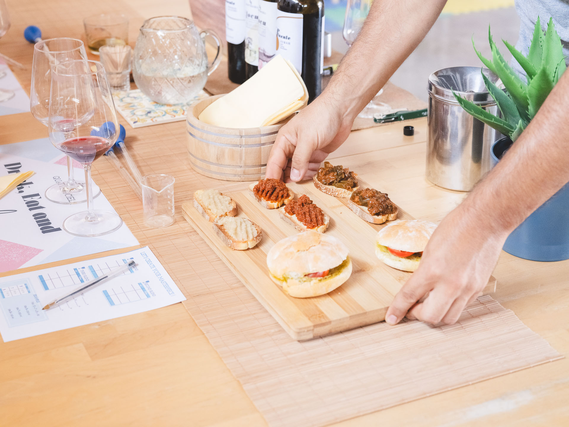 我们将为您提供一份 Tagliere 奶酪,配有当地的冷盘和奶酪,以及一些配有西西里香蒜酱和我们生产的橄榄油的意式烤面包。