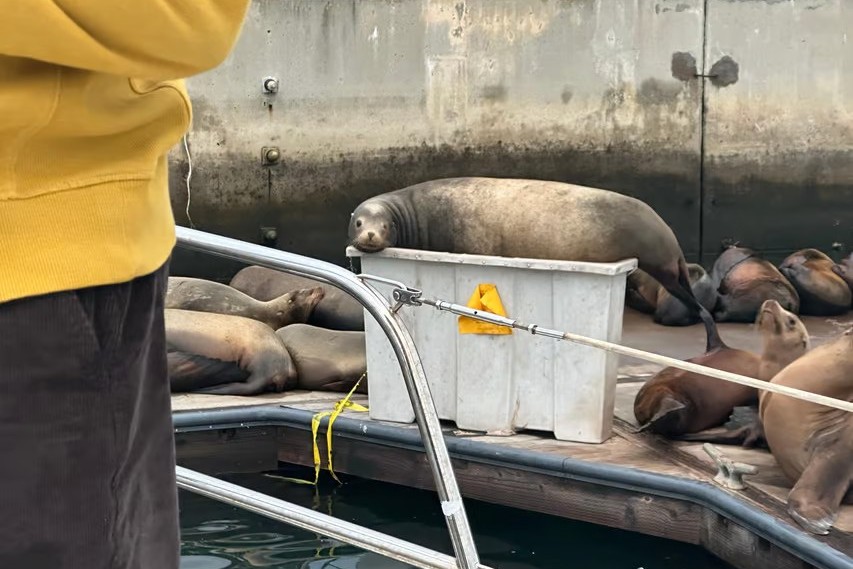 观察在宁静的码头边晒太阳的海狮