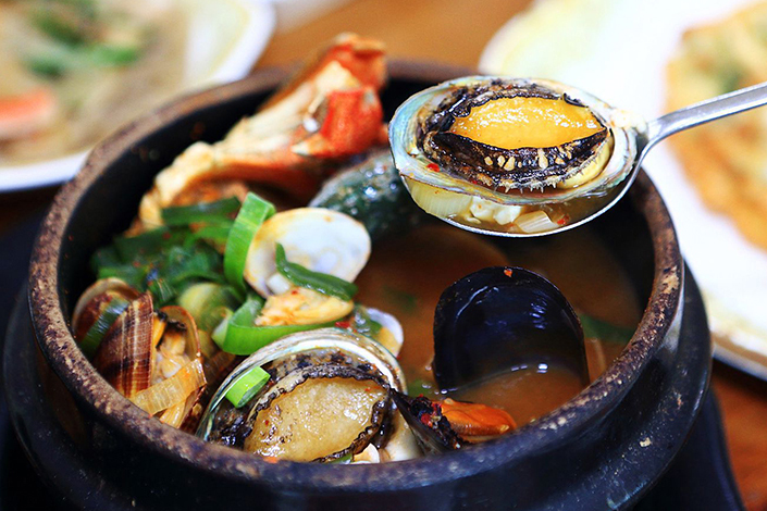 用最新鲜的食材烹制的温暖的当地海鲜炖锅令人愉悦