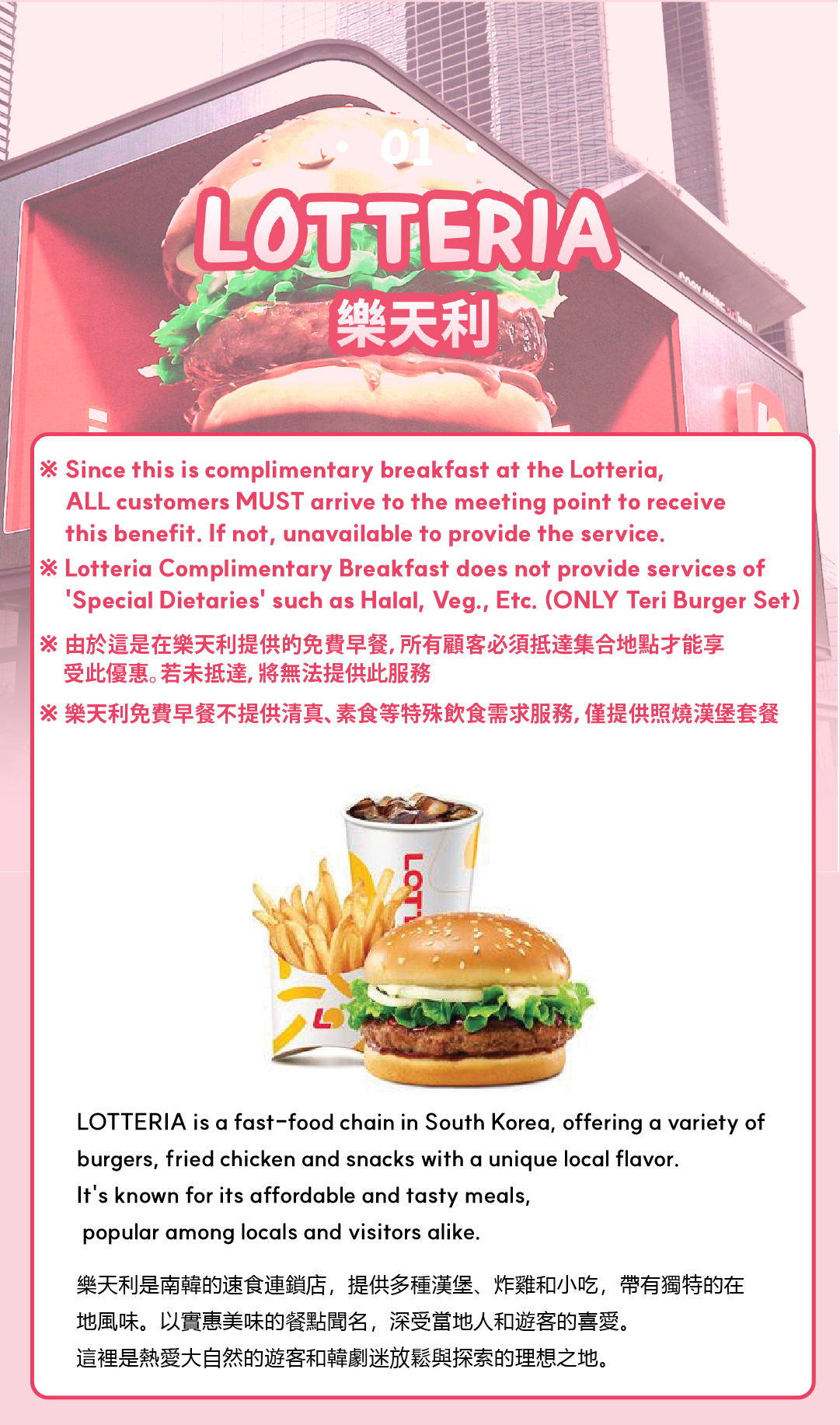 乐天利亚是韩国一家快餐连锁店,提供各种汉堡、炸鸡和具有独特当地风味的小吃。它以价格实惠且美味的饭菜而闻名,深受当地人和游客的欢迎。