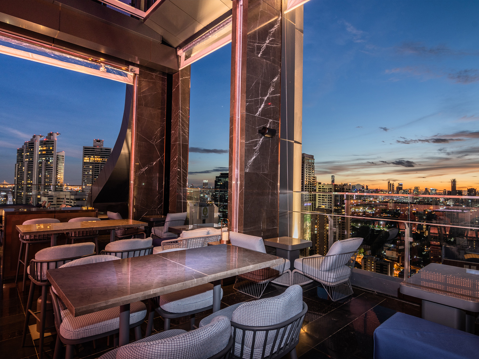完美的放松氛围。与朋友在 Cooling Tower 酒吧的星空下度过难忘的夜晚。宽敞的休闲露台位于 34 楼,可欣赏这座闪闪发光的大都市的壮丽景色,是下班后放松身心和享用日落鸡尾酒的理想场所