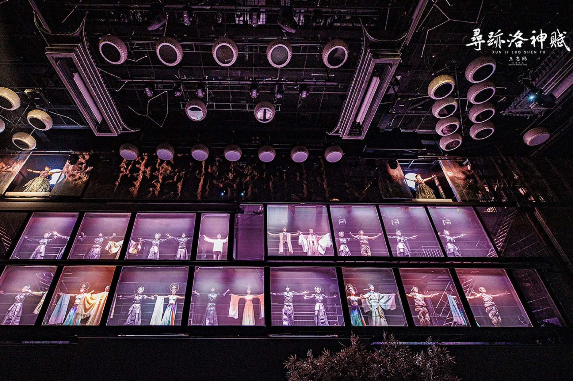 五十分钟的演出,没有固定座位,全程行浸式体验,仿佛成为故事中的一员,灯光秀的炸裂开场,洛神的翩翩起舞,卢舍那大佛的凿龛声,历史人物的诗意对话,每一个瞬间都让人震撼不已