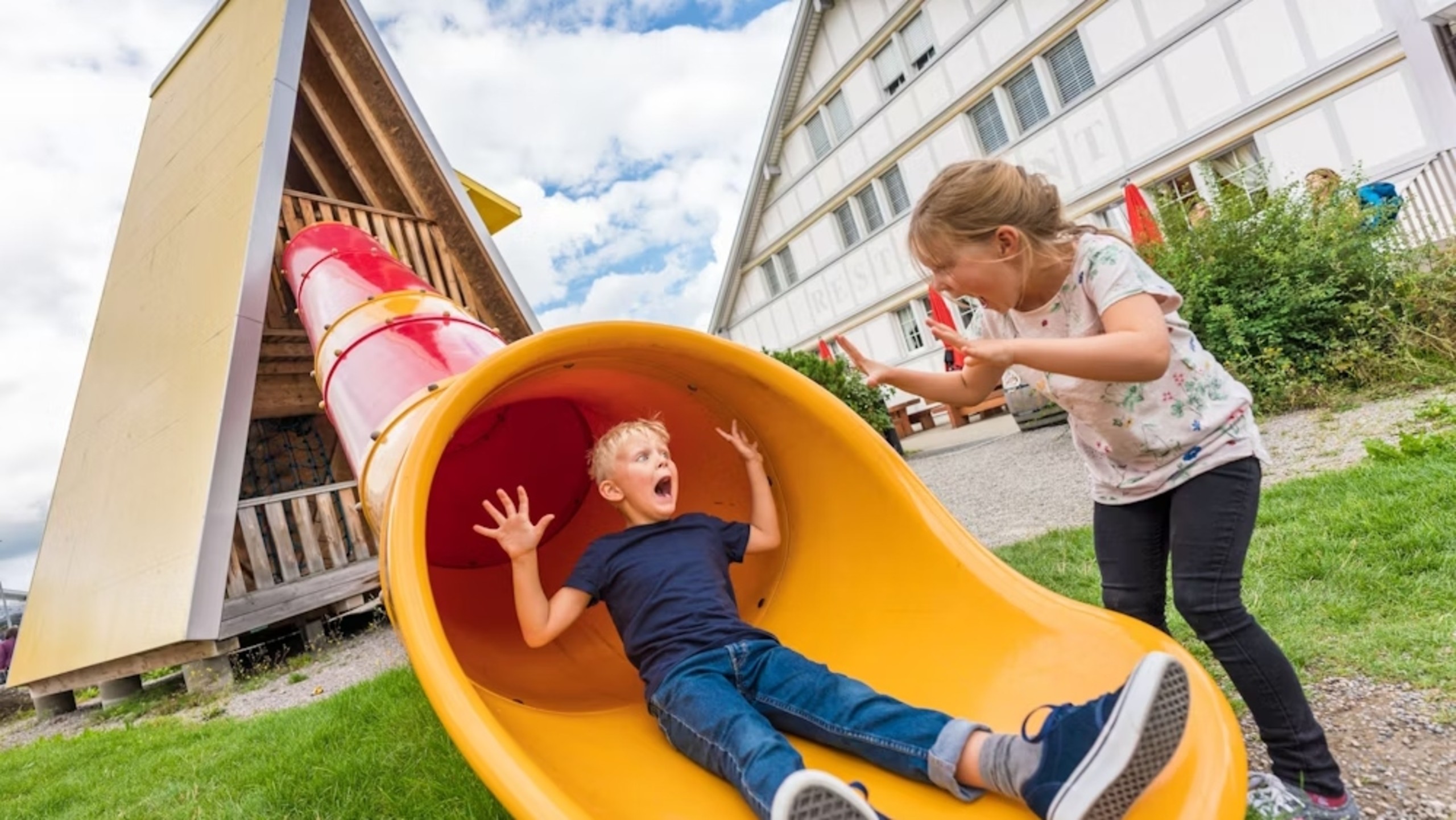 在阿彭策尔的巨型奶酪屋游乐场玩耍