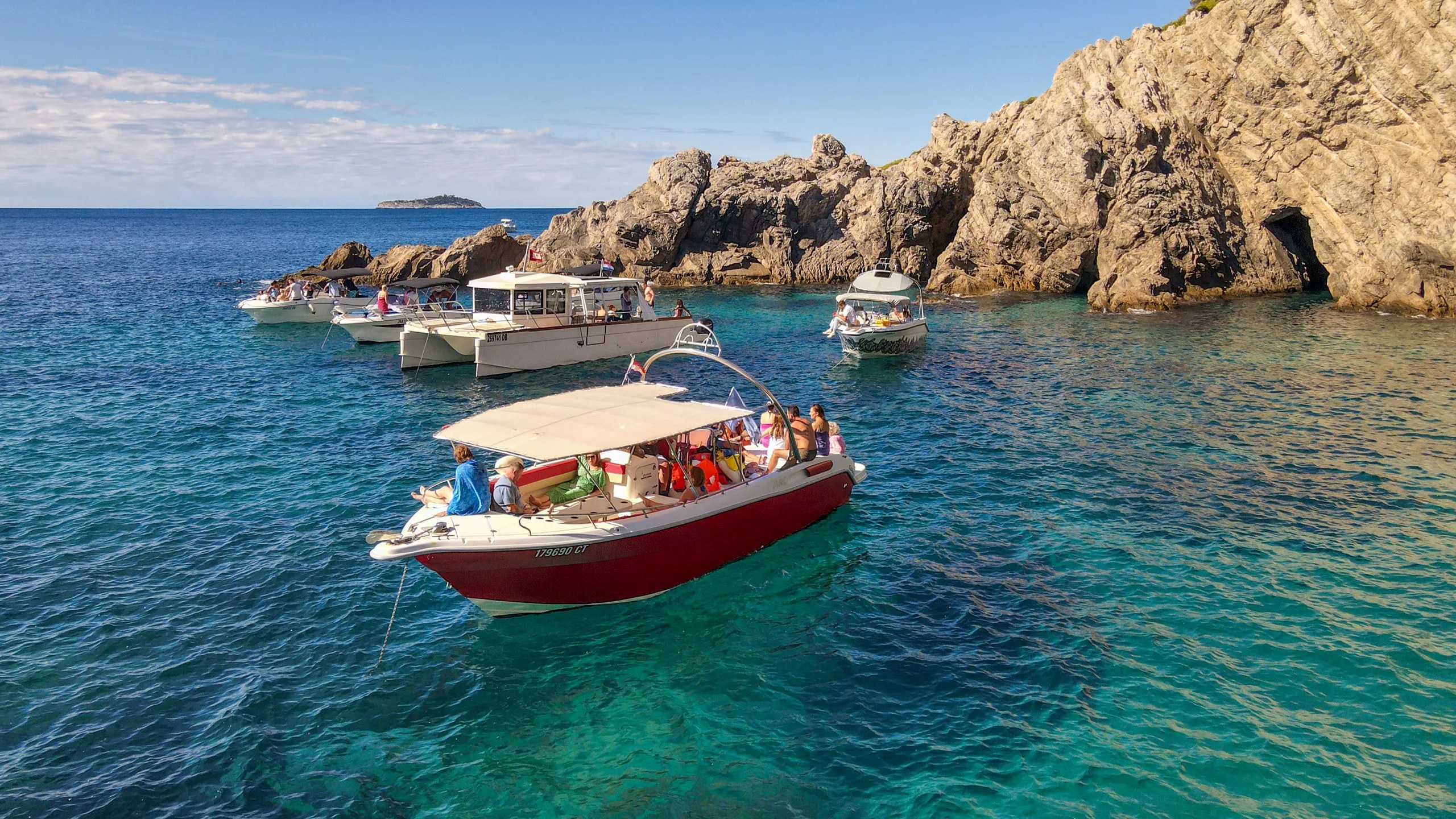 这次旅行包括参观埃拉菲蒂群岛上的蓝洞、绿洞和桑吉沙滩。这些洞穴位于科洛切普岛。之后,我们参观洛普德岛的桑吉沙滩。您可以在所有这些地方浮潜。埃拉菲蒂群岛是杜布罗夫尼克附近的群岛。科洛切普岛风景如画,拥有多样的自然风光和植被,被称为绿岛。这里是散步、放松或骑自行车的理想场所。洛普德岛通常被称为埃拉菲蒂的隐藏宝石,是开发程度最高的岛屿,并且拥有丰富的绿色植被。这个岛上没有汽车,因此您可以享受宁静。