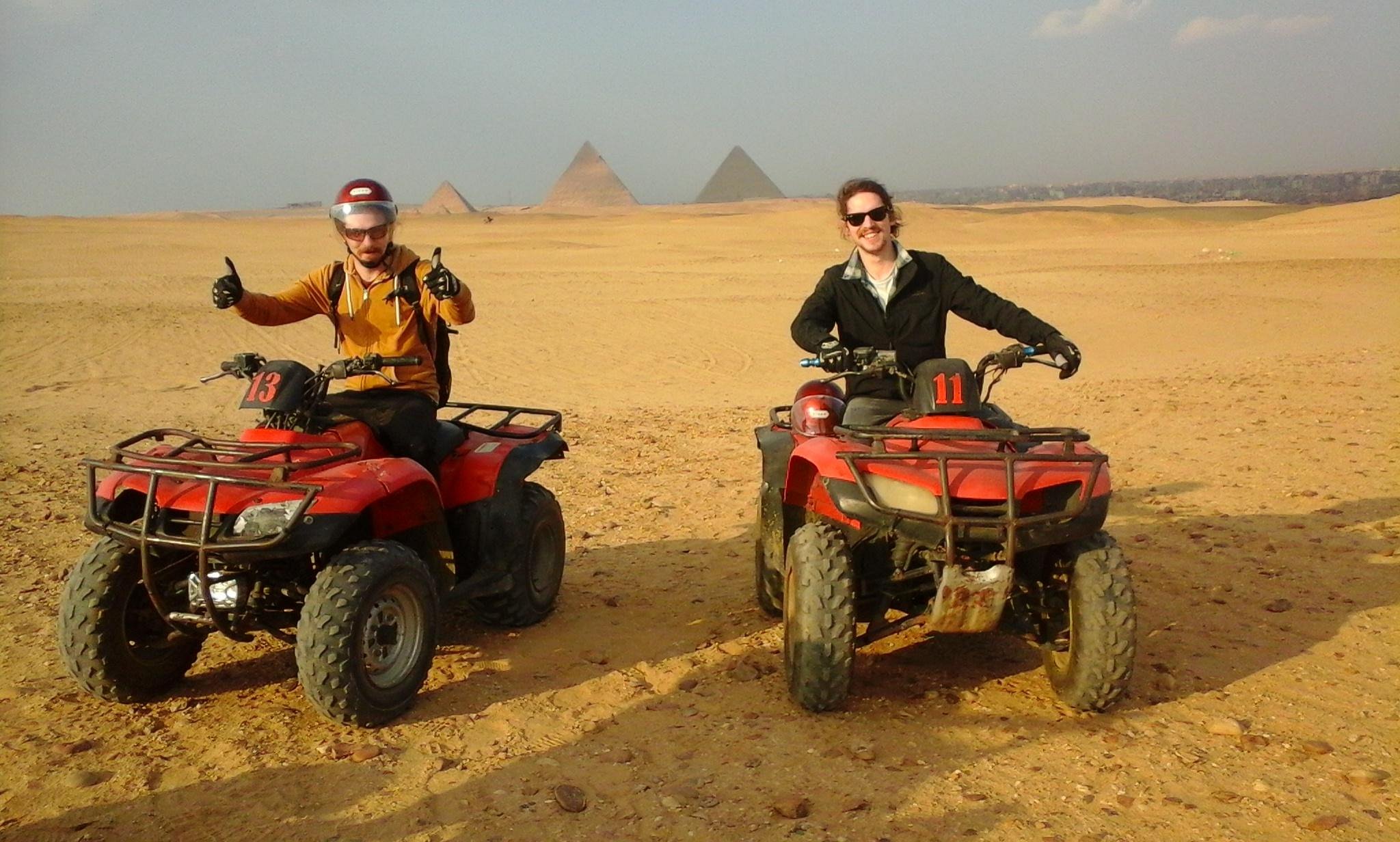 乘坐 ATV 四轮摩托车在金字塔进行沙漠之旅。往返