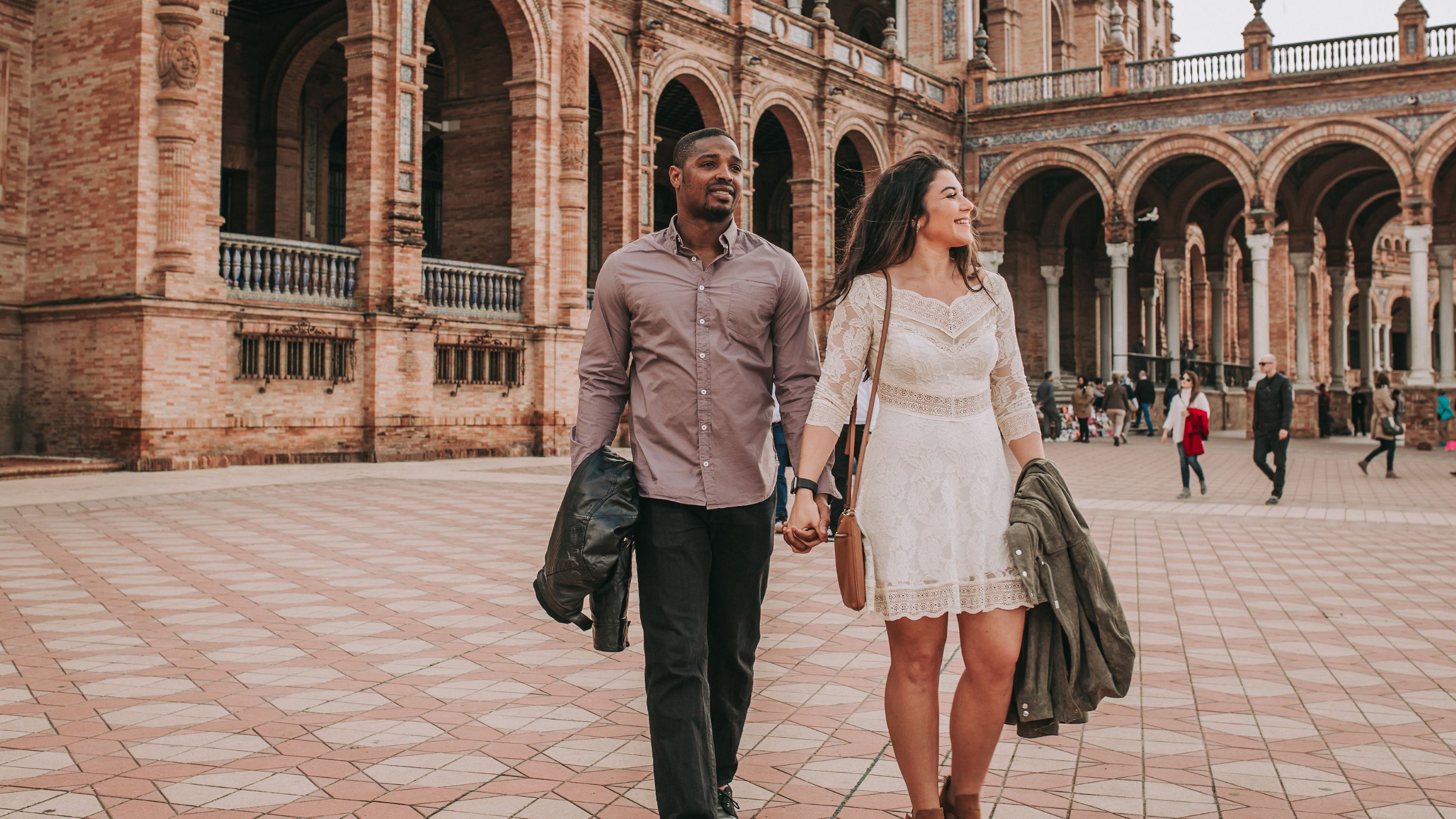 在塞维利亚标志性的风景如画的地点捕捉真诚的瞬间和真挚的情感