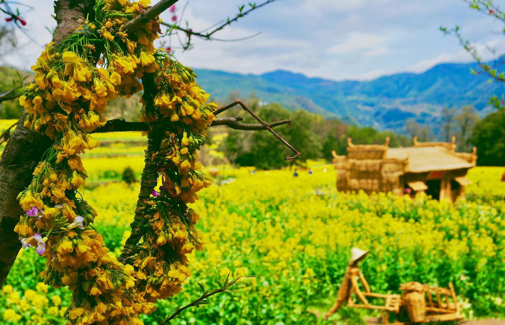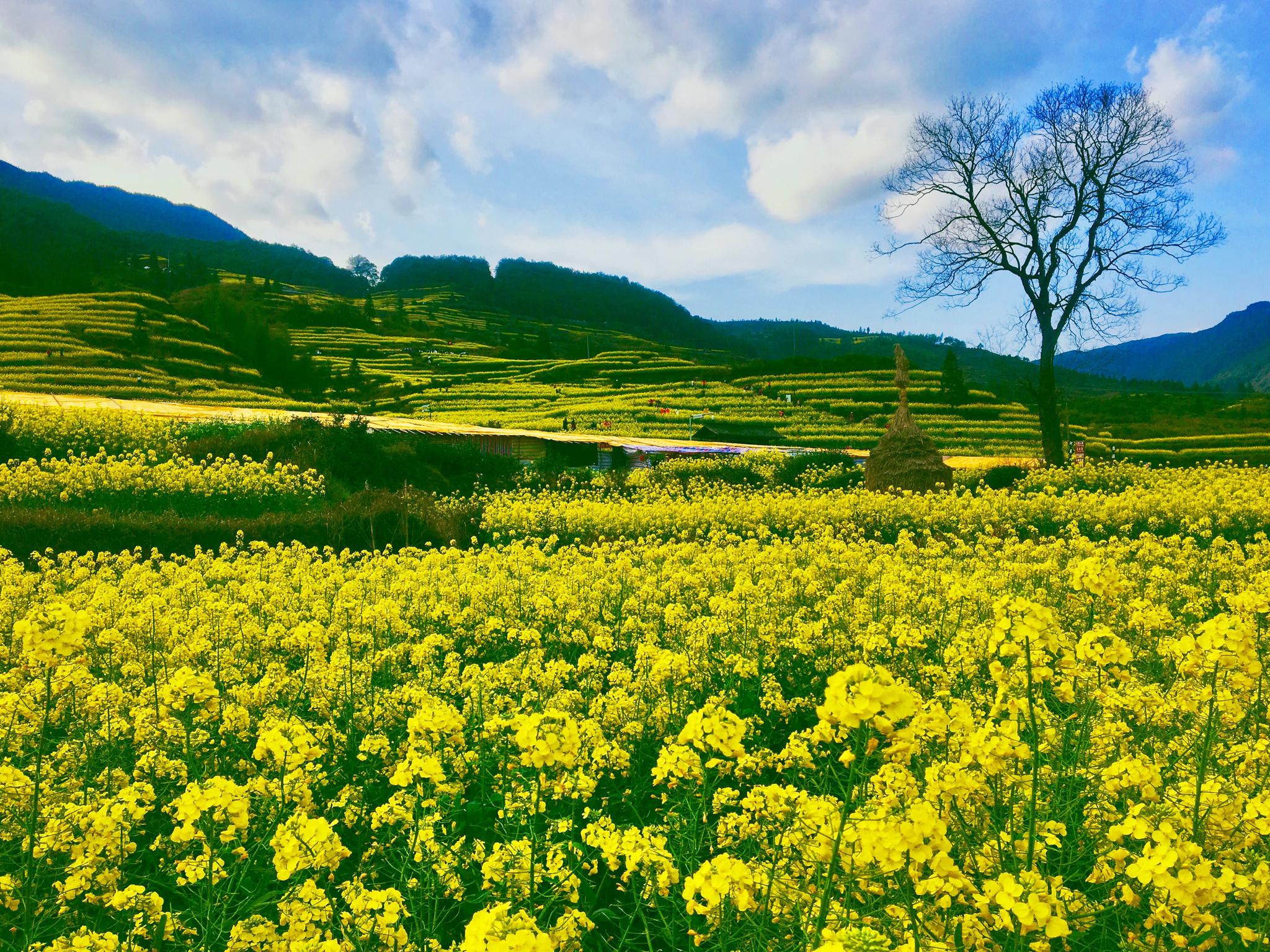 每年三月,漫山遍野的油菜花盛开,从山顶铺散到山谷下,层层叠叠,一望无际。