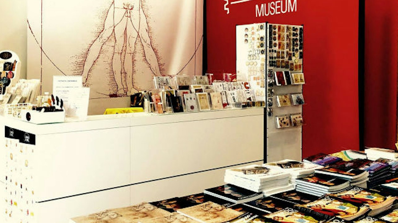 在书店购买一件独特的达芬奇风格纪念品结束您的旅程