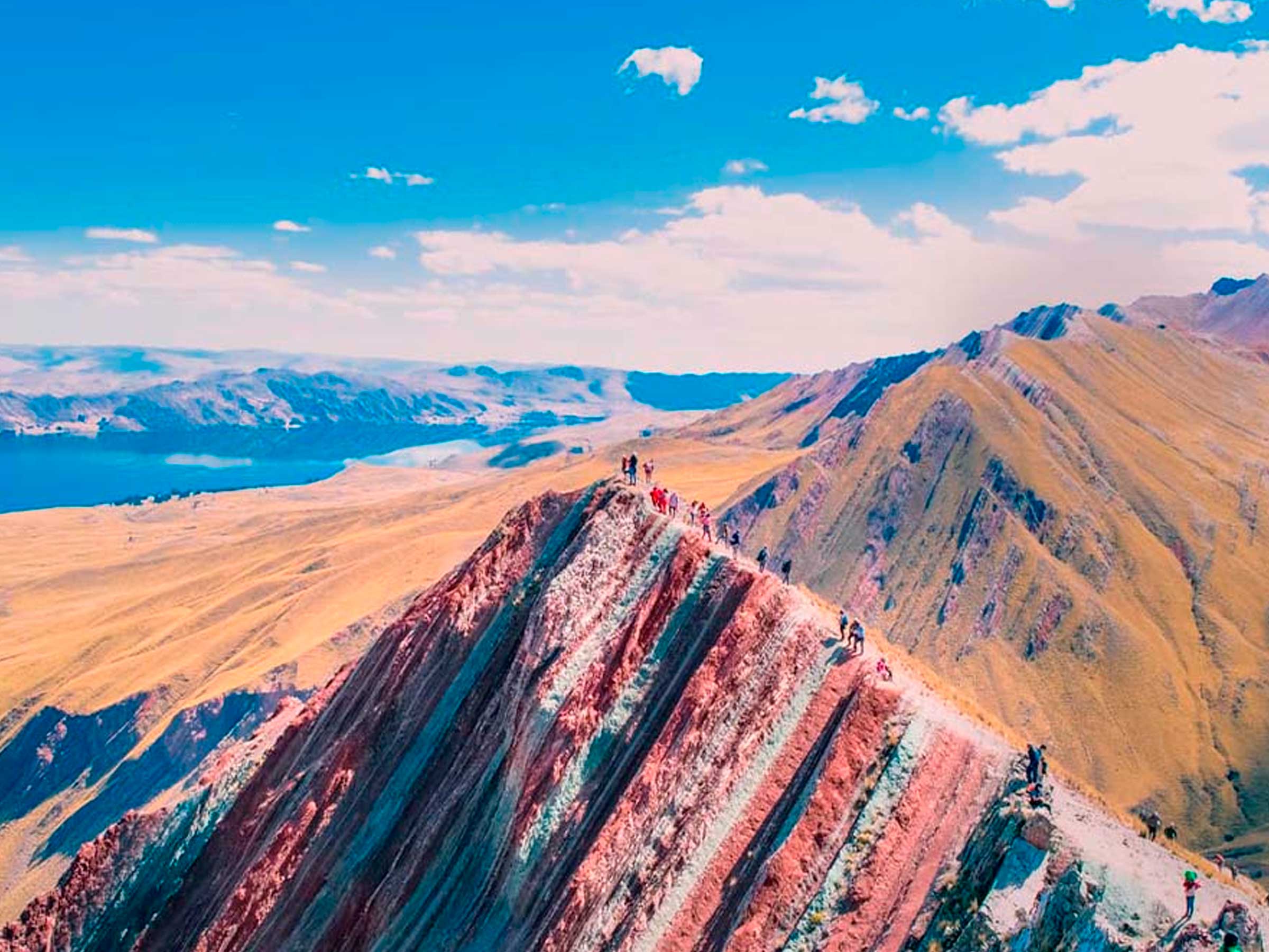 我们从凌晨 4:00 出发,在库斯科的酒店接您,乘坐私人巴士 3.5 小时前往西库阿尼,在那里享用美味的早餐。然后,我们继续行驶一小时前往朗吉拉约泻湖和拉约。从那里,我们徒步 5 公里(约 1.5 小时)到达海拔 4,790 米的令人惊叹的 Pallay Punchu 山。在山顶,我们欣赏令人惊叹的全景,并拍摄令人难忘的照片。之后,我们返回拉约,然后返回西库阿尼享用自助午餐,品尝当地菜肴。最后,我们返回库斯科,大约下午 5:00 到达,结束了一次令人难以置信的安第斯冒险,充满了壮观的风景、文化沉浸和与大自然的深厚联系。