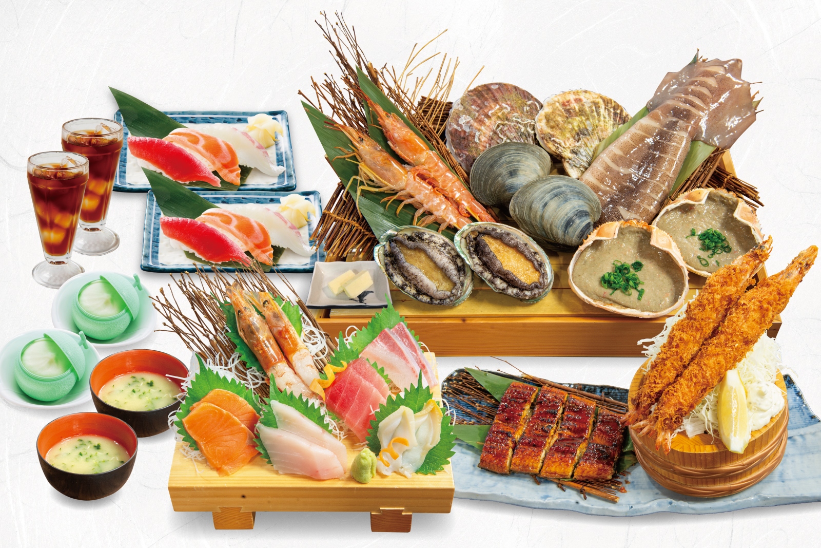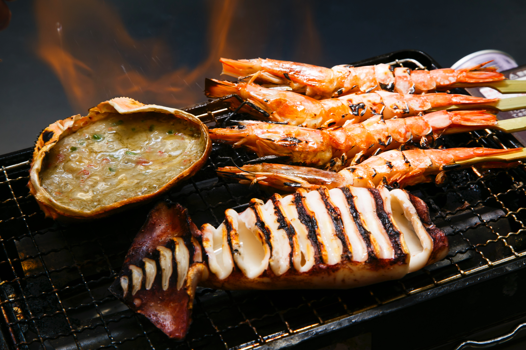 在这里,您可以品尝水槽中现捞的新鲜贝类,并亲自烧烤,享受现场烤肉的乐趣!推荐招牌特色矶丸烧,以及非常有人气的蟹味噌甲罗烧。另外也有各式新鲜的生鱼片和单点料理供选择,亦非常受到女性顾客喜爱喔!