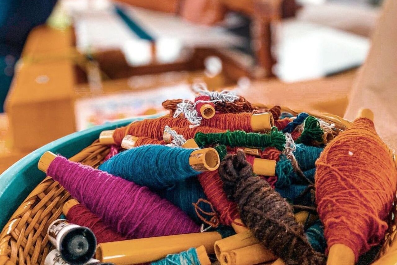 特奥蒂特兰当地工匠使用天然染料编织色彩鲜艳的羊毛地毯