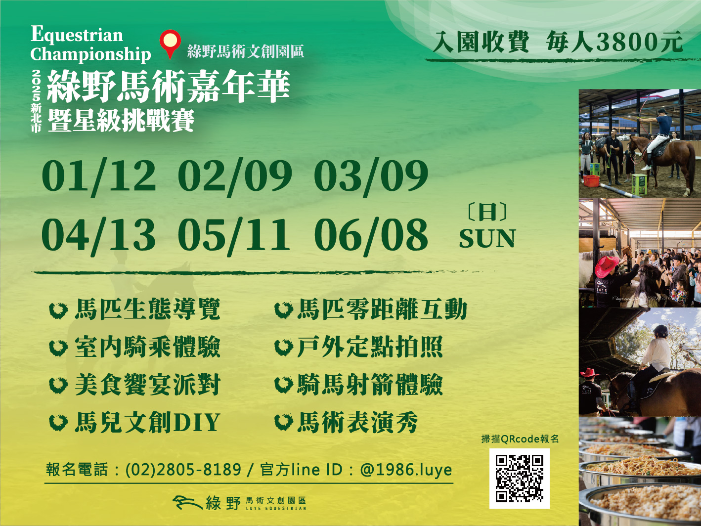 * 体验于表定时间准时开始,请至少提前15分钟抵达绿野马术文创园区报到