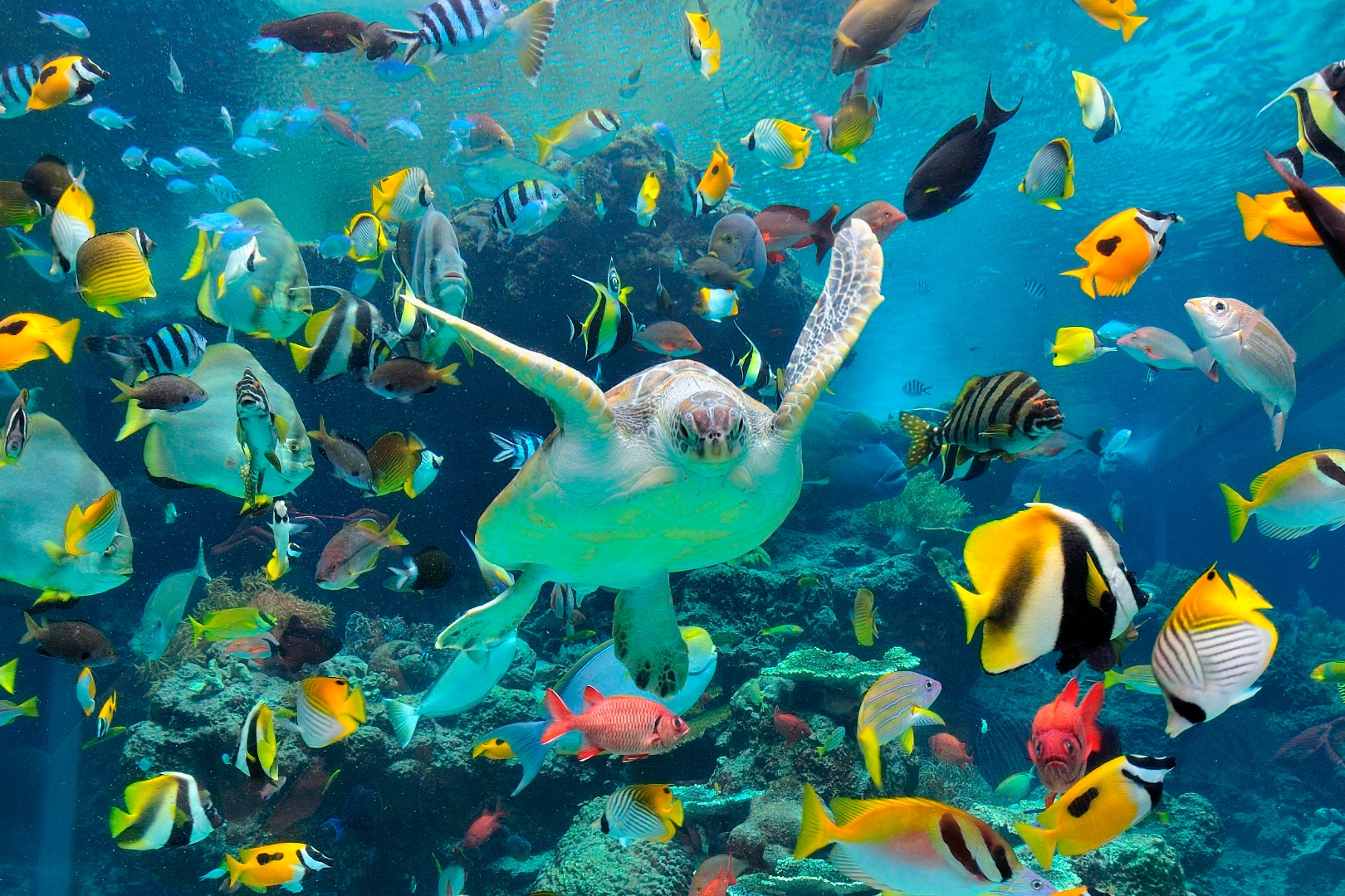 - 沖繩美麗海水族館是「海洋博公園」內其中一個設施。除了水族館之外,還有海豚秀、海龜海牛館、海灘、兒童公園等可免費參觀。