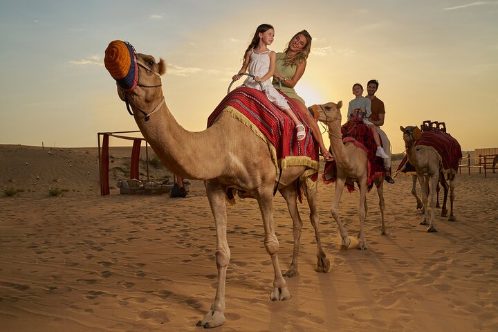 在 Noble Camp,您可以沉浸在阿拉伯文化中,这里有传统的集市、Luqaimat 糖果、骆驼骑行、小骆驼喂食、指甲花纹身和完全许可的酒吧。