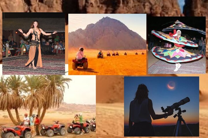 这是一项精彩的全天活动,适合全家人探索西奈沙漠及其山脉的美丽,不仅如此,您还将踏上 2 小时的四轮摩托车探险之旅,骑骆驼穿越沙漠,享用美味的贝都因人晚餐,并在篝火旁观看精彩的娱乐表演。