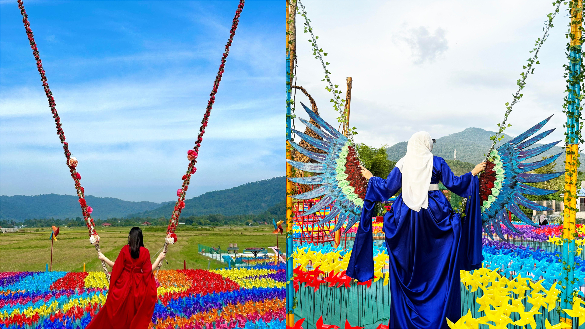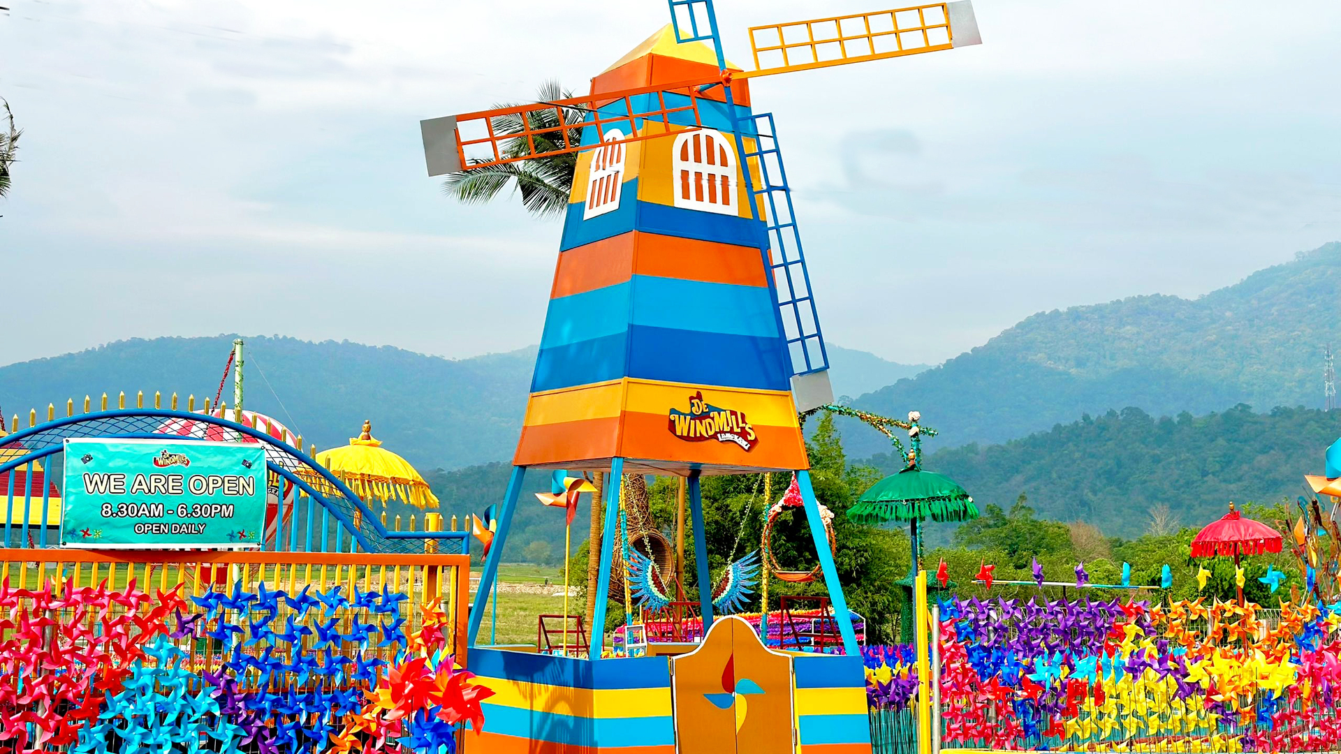 享受拍摄活动,欣赏色彩鲜艳的风车和稻田自然景观。兰卡威岛的自然奇观环绕四周,漫步在公园阳光斑驳的小径上,沉浸在大自然的壮丽之中,放松身心。