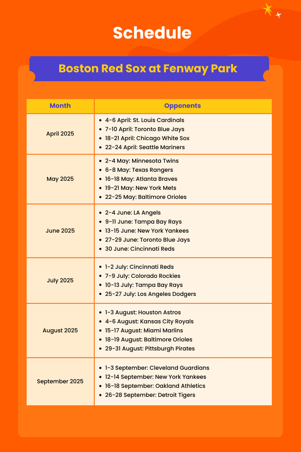 该球场悠久的历史和独特特色使其成为美国职业棒球大联盟 (MLB) 最受欢迎的球场之一。这里有各种各样的优惠、设施和娱乐活动,无论您是独自旅行,还是与亲朋好友一起前往,观看波士顿红袜队的比赛都是不容错过的体验!