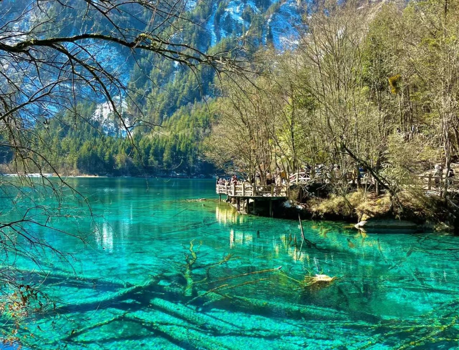 春日的九寨沟,山峦翠绿,湖水湛蓝如宝石。繁花似锦,点缀在山坡,溪流潺潺,轻吟浅唱,宛如一幅绝美的画卷,令人心醉神迷