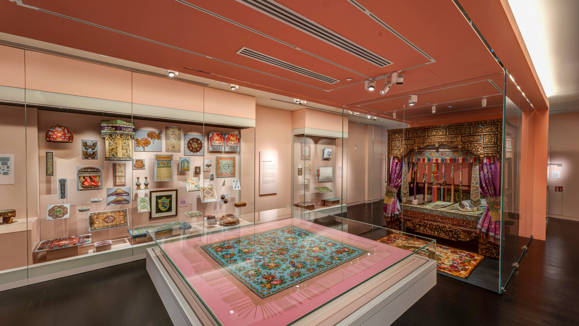 探索装饰纺织品画廊,发现一系列代表土生华人传统和文化的纺织品。