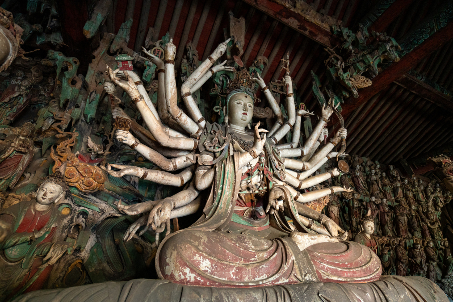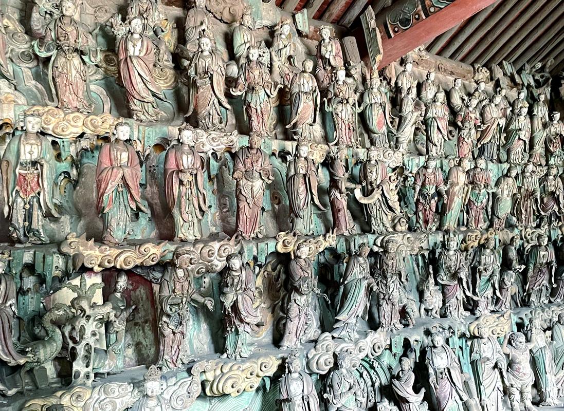 在中华广袤大地上双林寺宛如一颗熠熠生辉的璀璨明珠,散发着独特而迷人的光芒。它被世人盛赞为“东方彩塑艺术宝库”,亦享有“古代艺术博物馆”的美誉。步入双林寺,仿佛踏入了一座穿越时空的艺术殿堂。寺内,那一尊尊精美的彩塑,是岁月雕琢的艺术杰作,每一处线条、每一抹色彩,都蕴含着古人的匠心独运。这些彩塑形态各异,或慈悲祥和,或威严庄重,生动地展现了古代艺术的精湛技艺。在中英双语导游的带领下,仔细欣赏各个殿内的彩塑,从宋代彩塑的圆润柔和,到明代彩塑的线条流畅、造型规整,深入感受古代雕塑艺术的魅力。