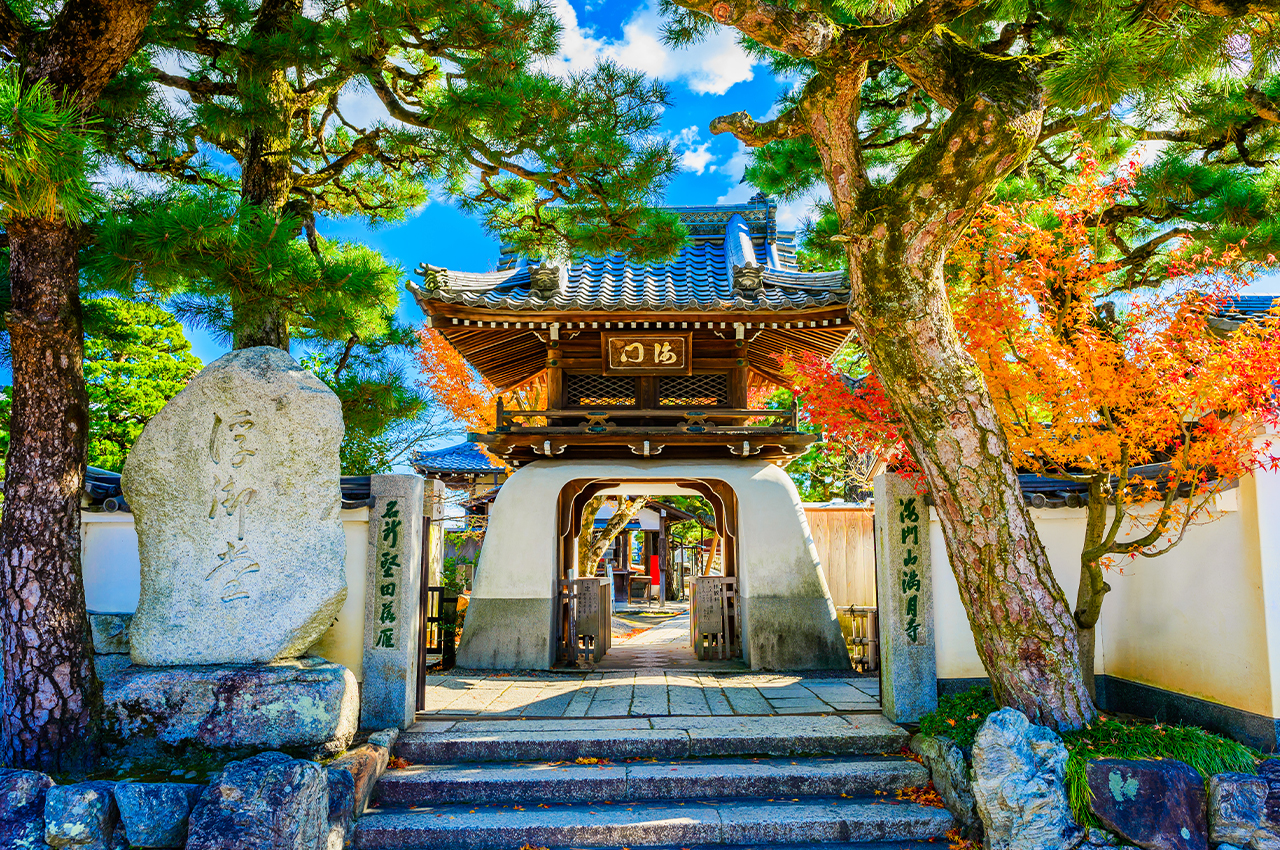 据传平安时代,惠心僧都源信为了祈求琵琶湖的湖上安全和普度众生,在湖中修建了佛堂。临济宗大德寺派的寺院。