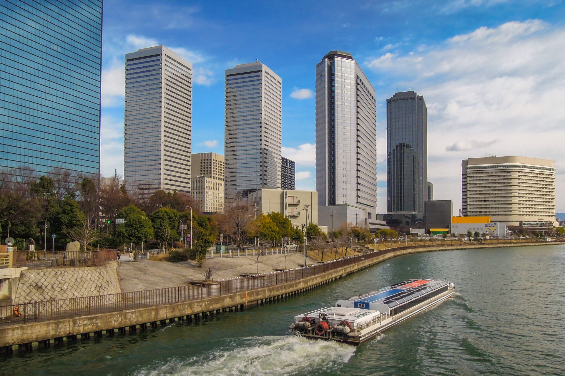 大阪有“水城”之称,乘坐观光船游览大阪的河道和运河,从水上欣赏独特的风景。从船上可以欣赏到历史建筑、现代摩天大楼、
