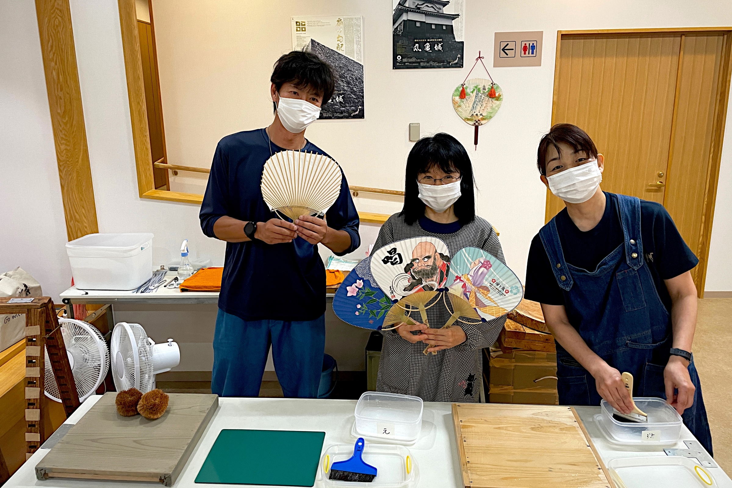 扇子已被指定为国家传统工艺品,丸龟市聚集了许多扇子制作工匠,全国各地的扇子制作工匠都来此制作扇子。请您亲自尝试一下。