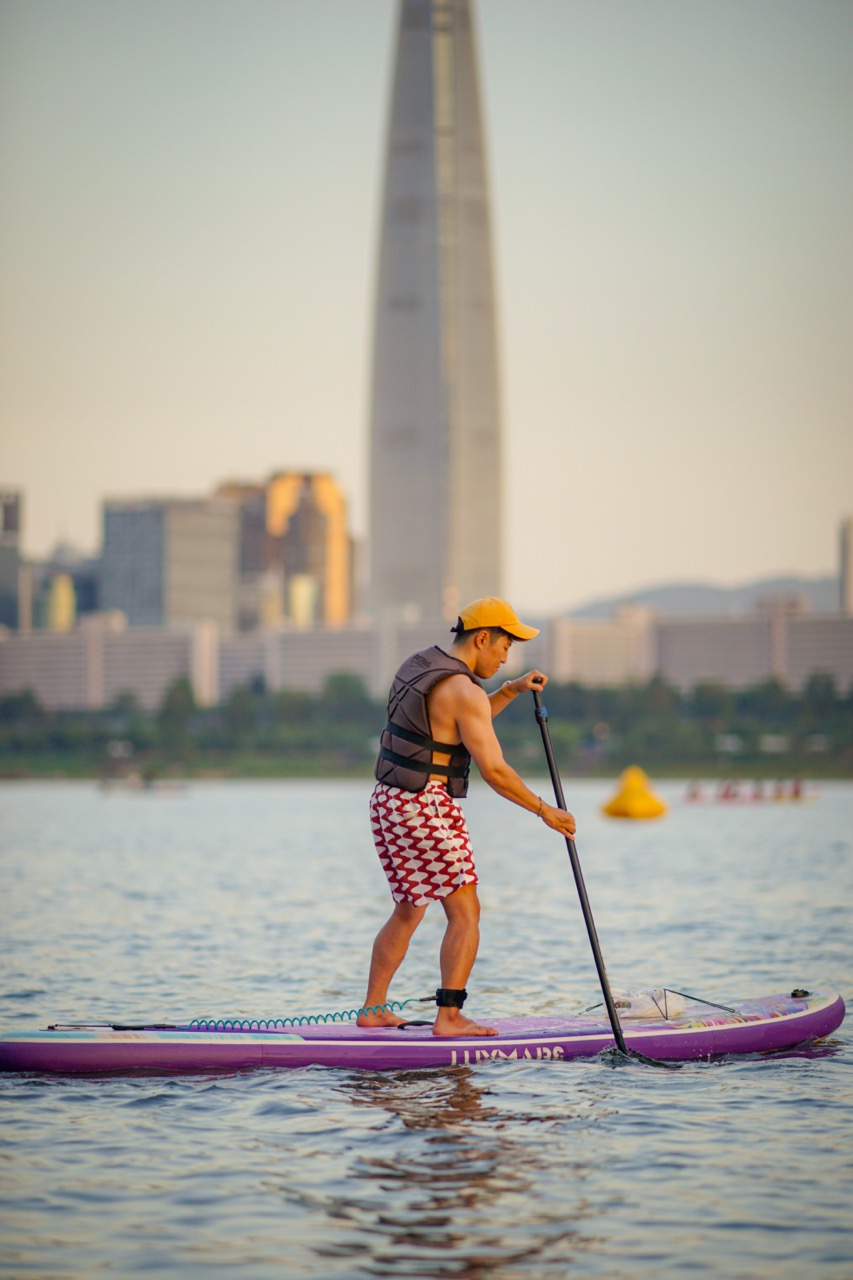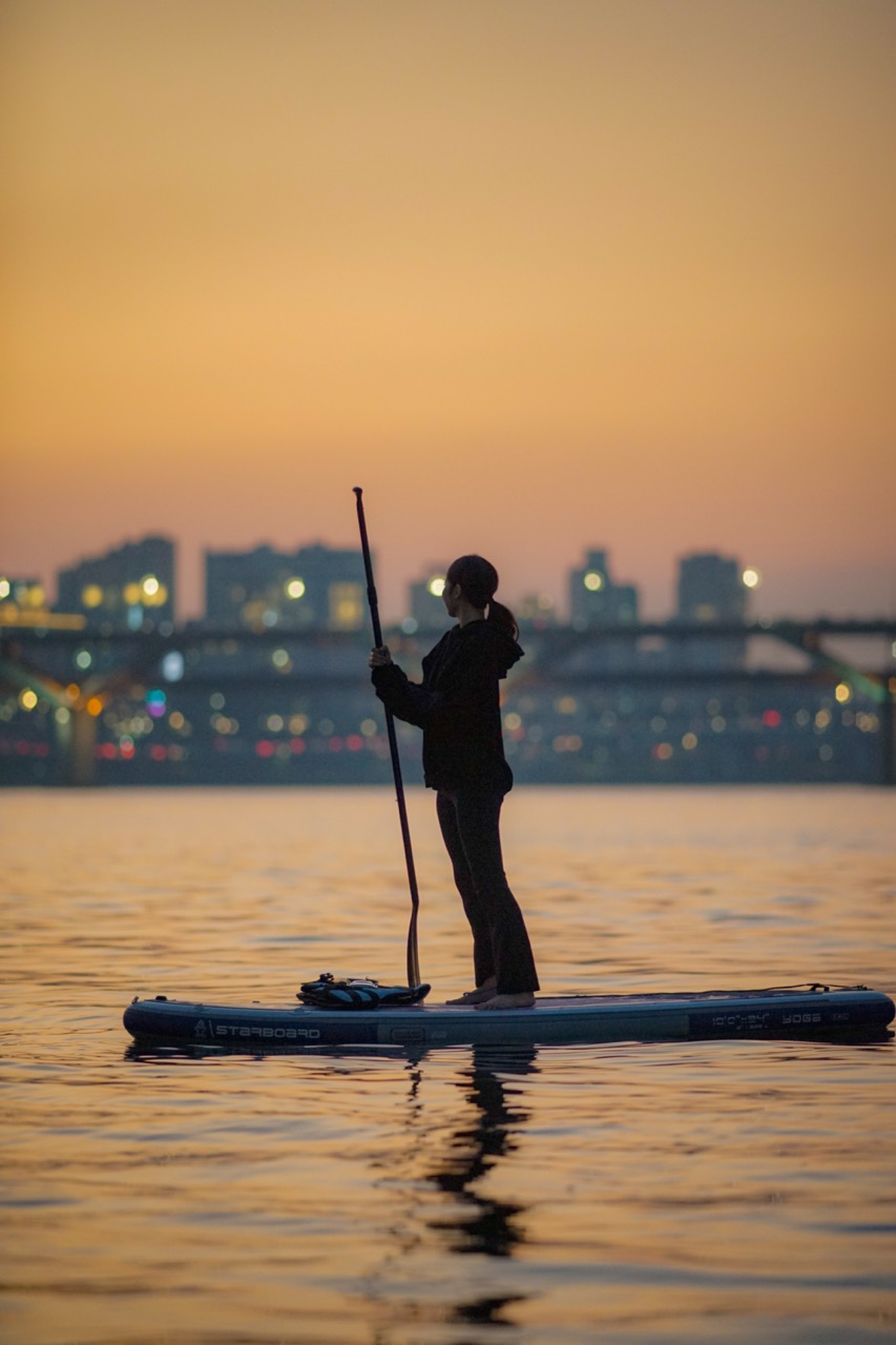 沿着汉江划皮划艇或桨板,欣赏迷人的夜空。