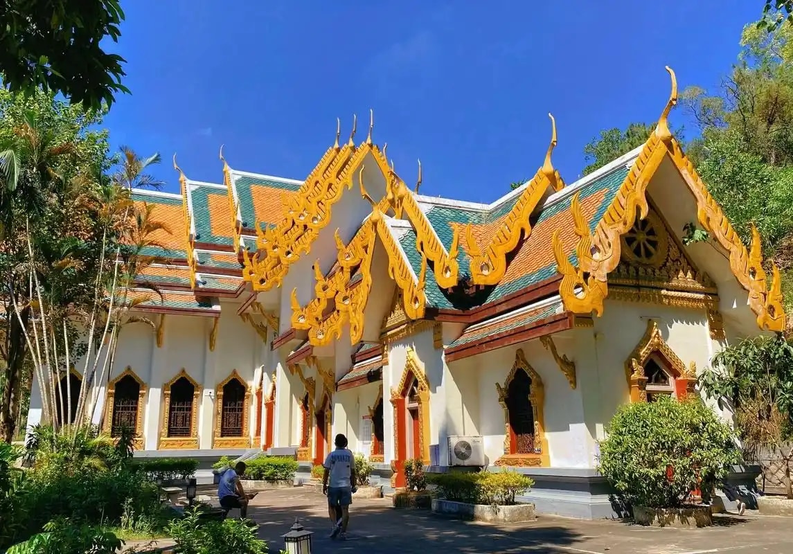 泰佛殿坐落在开元寺附近,虽与寺内传统唐宋宫殿式建筑风格迥异,却又奇妙地与之和谐共存。它是中泰文化友好交流的象征,由泰国友人倡议,潮州市政府主持建造,旨在纪念中泰两国人民的深厚情谊。远远望去,泰佛殿那金黄色的屋顶在阳光下闪耀着夺目光芒,其建筑造型独特,借鉴了泰国寺庙建筑的典型风格,线条流畅而富有动感。高高的尖顶,犹如指向天际的神秘符号,充满了宗教的庄严与神圣感。