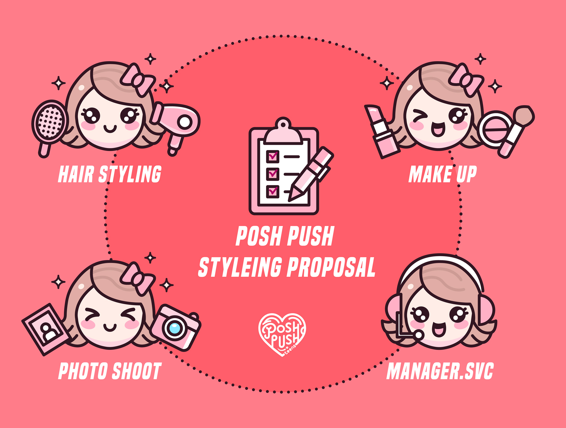 Posh Push 造型提案:选择您想要的偶像风格并发送您的近期照片。我们为您打造个性化