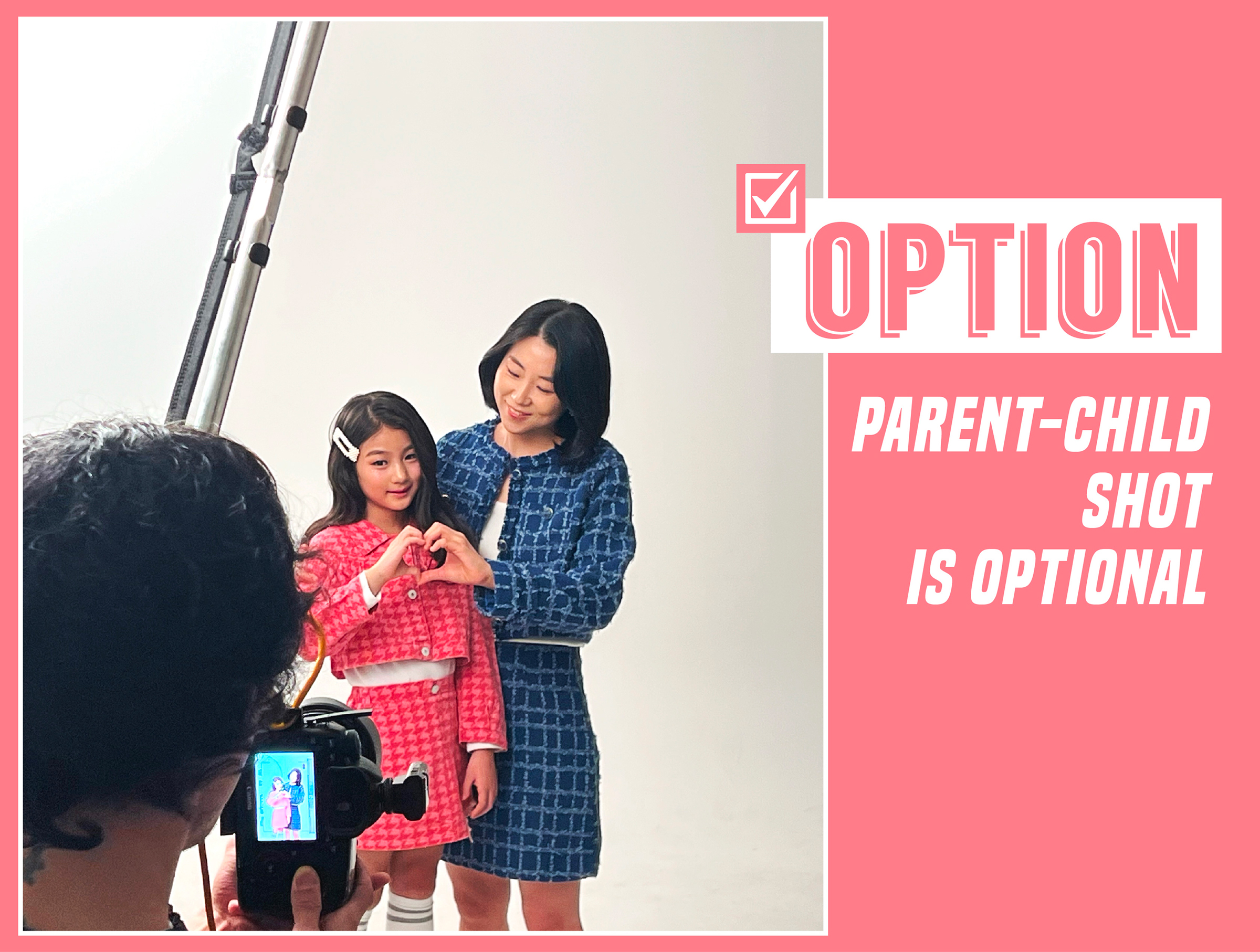 【仅限儿童及家长套餐】在工作室与专业摄影师一起拍摄。体验专业摄影师拍摄的照片与普通快照的明显不同。