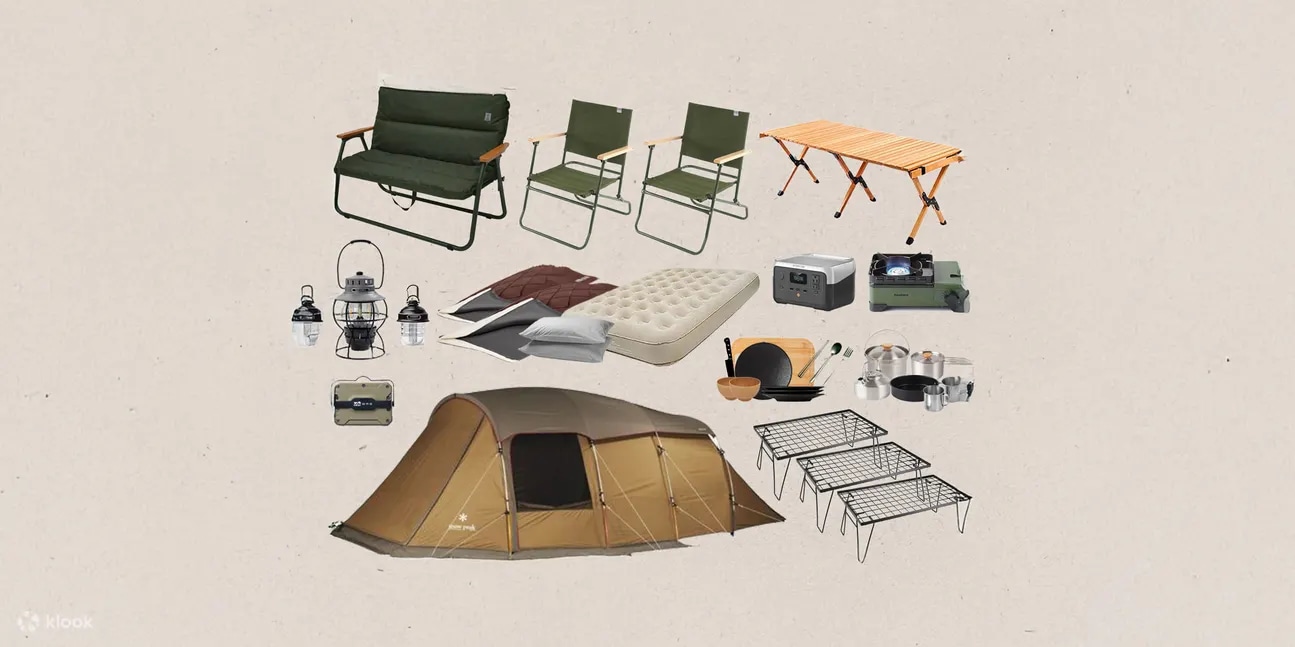 选择我们为你准备的Snow peak套装,由餐具、寝具、灯具至桌椅,所有在日本露营的需要品都已包含在内。只需购买食材进场享受露营时光