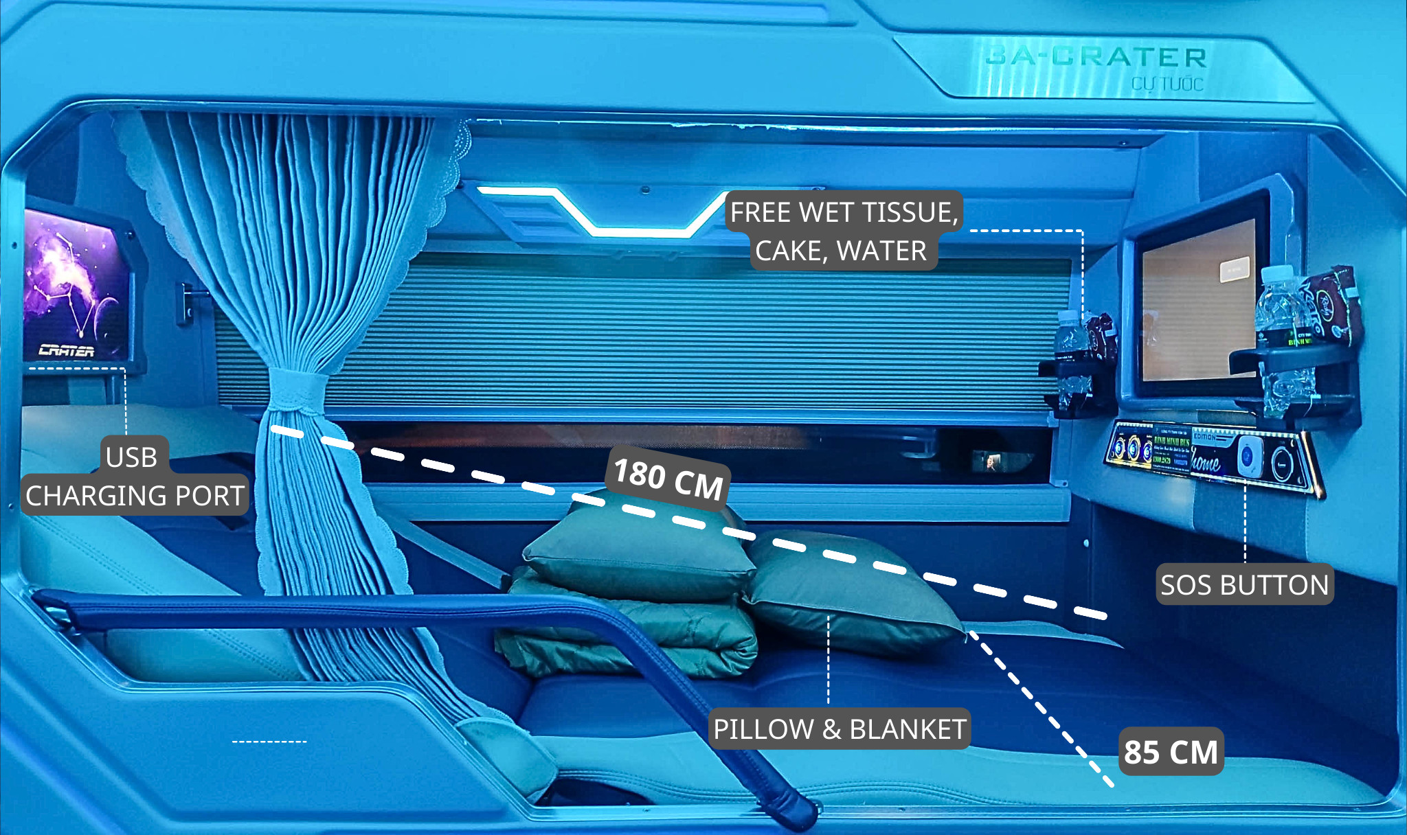 Nhat Duong - Binh Minh 巴士的单人和双人车厢尺寸相同,均为 850mmx18000mm