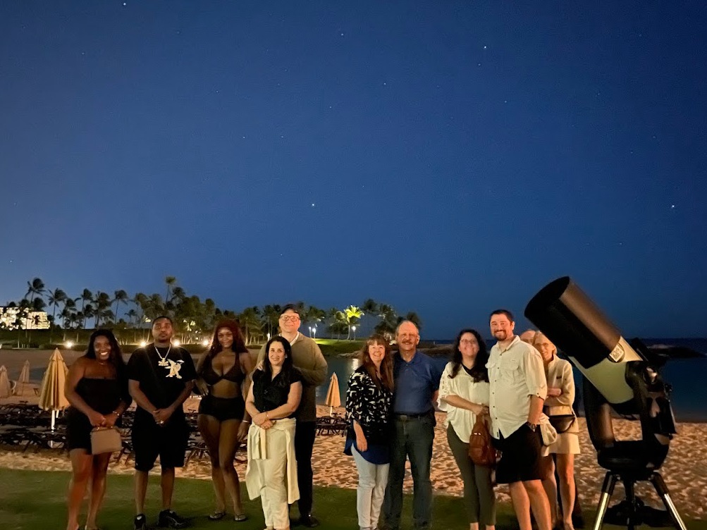 一道充满活力的绿色激光划过夜空,描绘出夏威夷星线,营造出触摸星空的奇幻幻境,令游客沉醉其中。每颗星星都以夏威夷语命名,并在相关情况下以其他文化语言命名,以彰显参与者的多样性。游客将探索月球陨石坑、土星环以及色彩斑斓的木星表面及其卫星。这项体验还将延伸至宇宙深处,探索遥远的行星和恒星系统。游客将见证恒星的生命周期,从闪耀的新生星团到绚丽多彩的星系,再到令人惊叹的超新星遗迹。这场沉浸式的观星冒险之旅将科学、文化和宇宙奇观完美融合,令人难忘,非常适合所有对宇宙充满好奇的游客。