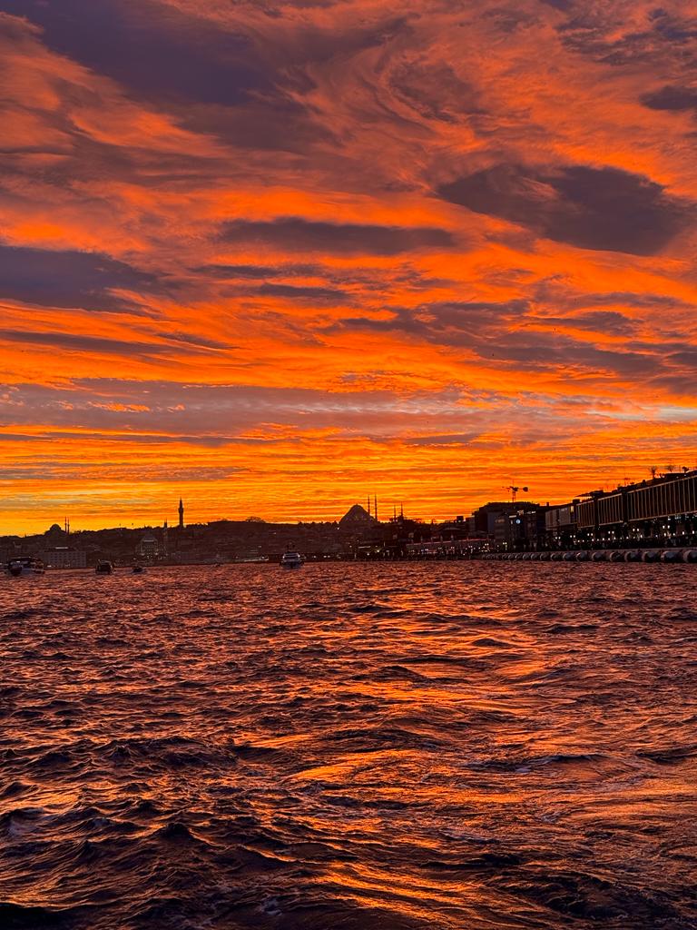 然后,我们前往豪华游艇,那里有冷热饮品等着您。从贝西克塔斯出发,我们沿着博斯普鲁斯海峡航行,途经奥塔科伊、贝贝克、阿尔纳武特科伊、鲁梅利堡垒、第二桥、安纳多卢卡瓦伊和贝勒贝伊宫等地标。客人可欣赏到壮丽的景色和金色的日落。