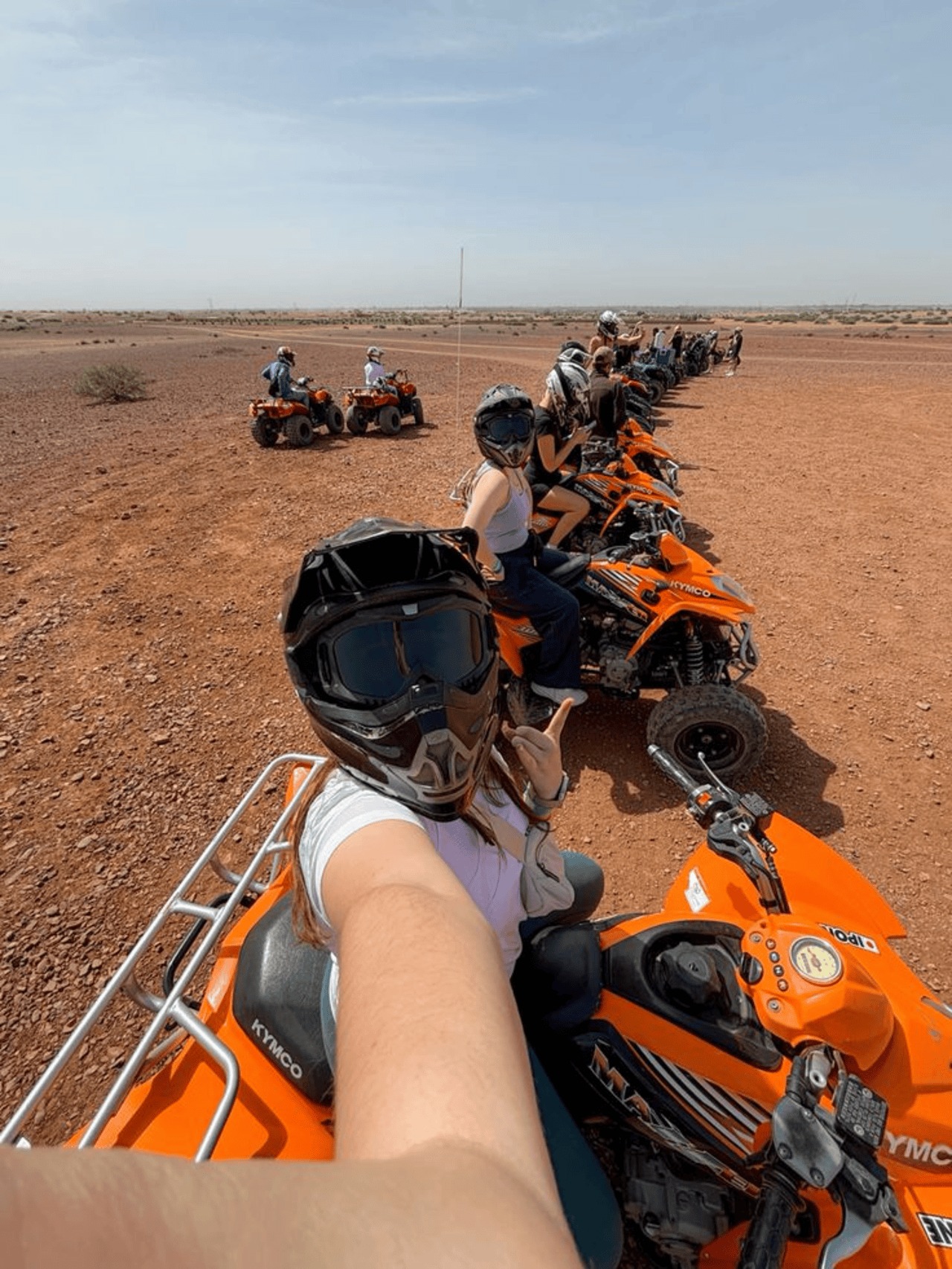 接下来,准备好体验刺激的四轮摩托车骑行!在专业导游的带领下,您将穿越岩石小径、沙丘和隐蔽的沙漠小径。享受惊险刺激的越野地形,非常适合冒险爱好者。