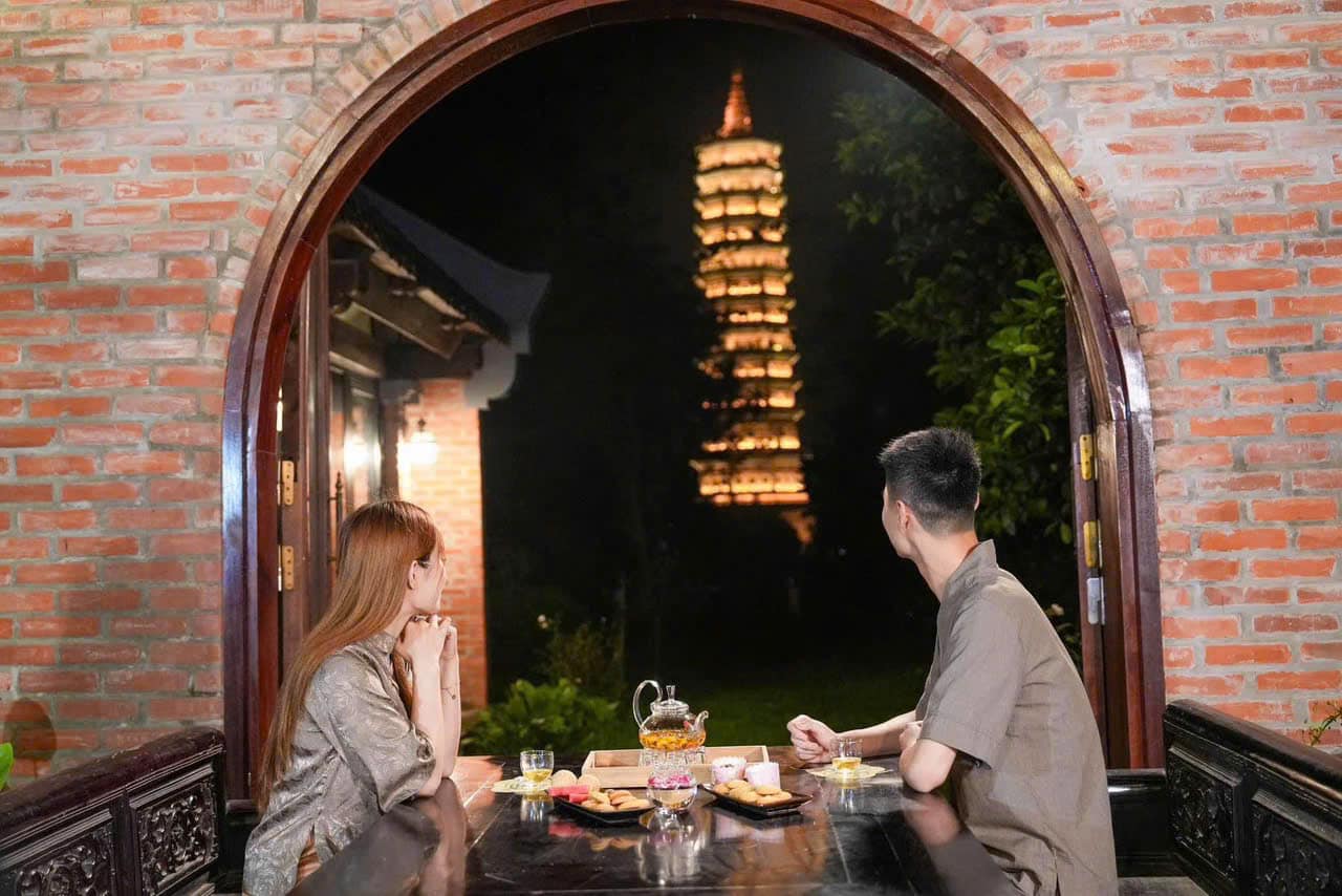 夜晚探索白亭寺的魅力!漫步在宁静的花园中,欣赏令人惊叹的建筑,感受金色灯光照亮的这片神圣之地的精神平静。以美丽的放灯仪式结束您的夜晚,将您的愿望放入宁静的水面——这是您越南冒险之旅中真正难忘的体验!