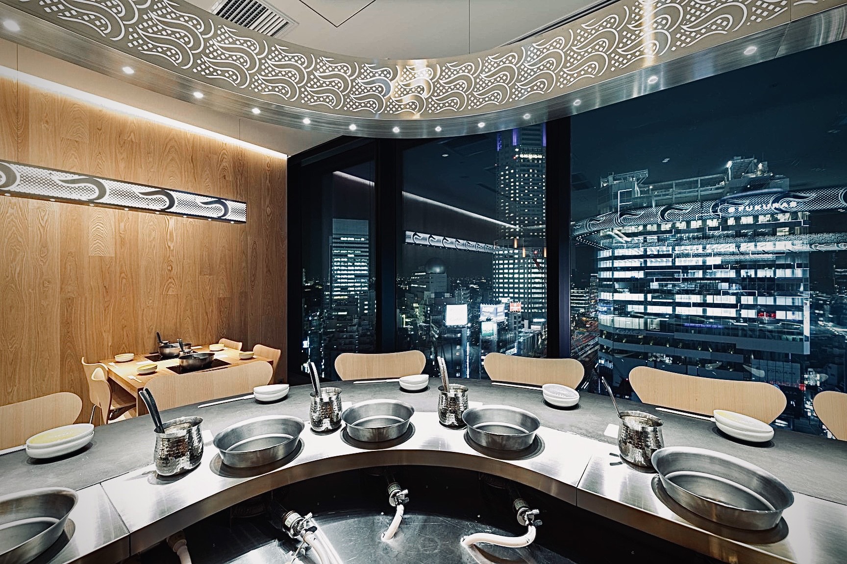 可观赏到佐籐可士和设计的夜景空间里享用涮涮锅。