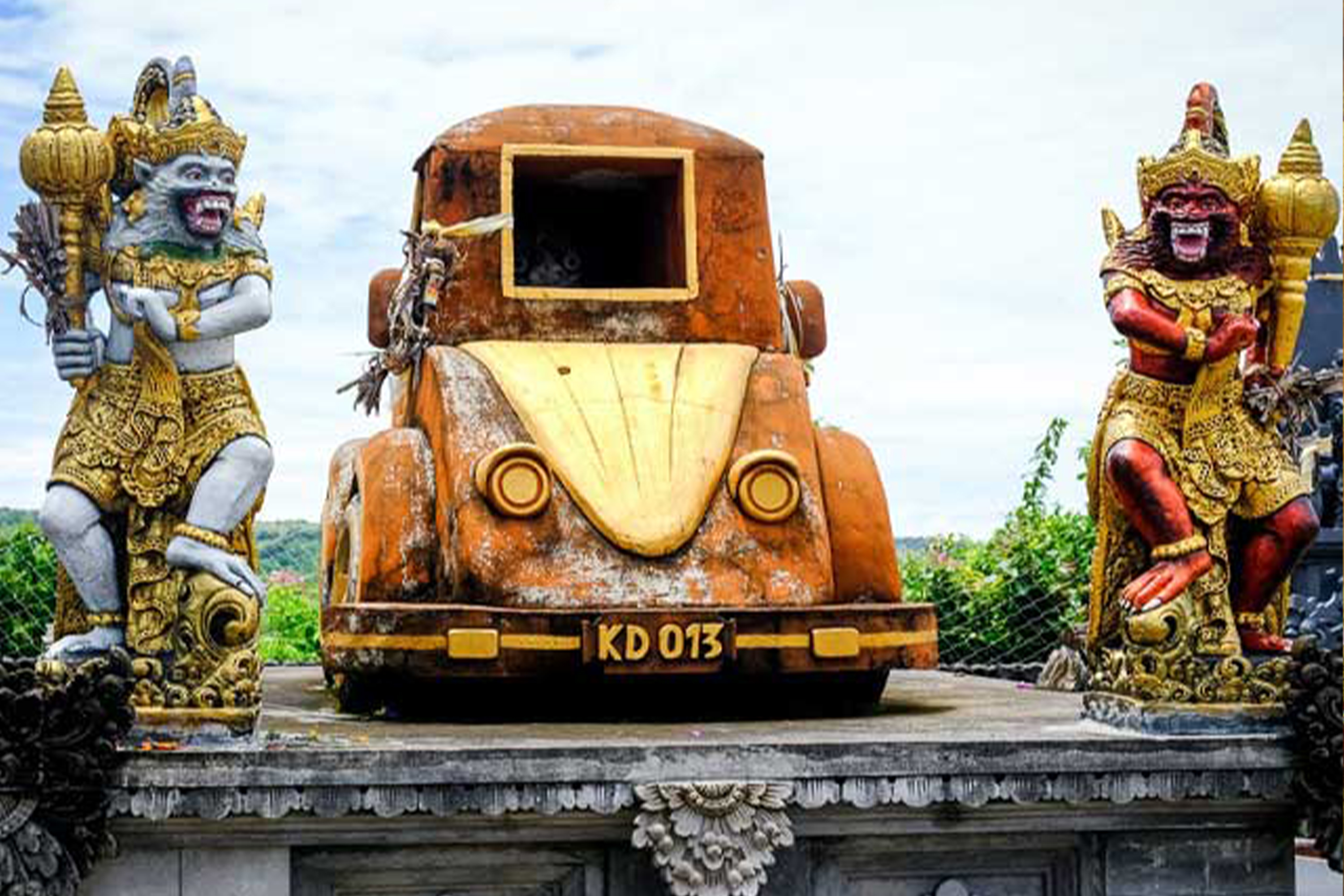 汽车庙是努萨佩尼达岛一座独特而又奇特的寺庙,寺庙中使用汽车作为宗教祭品的一部分。它将当地传统与现代符号融为一体,成为对岛上的创意和精神感兴趣的游客的一个有趣的停留地。