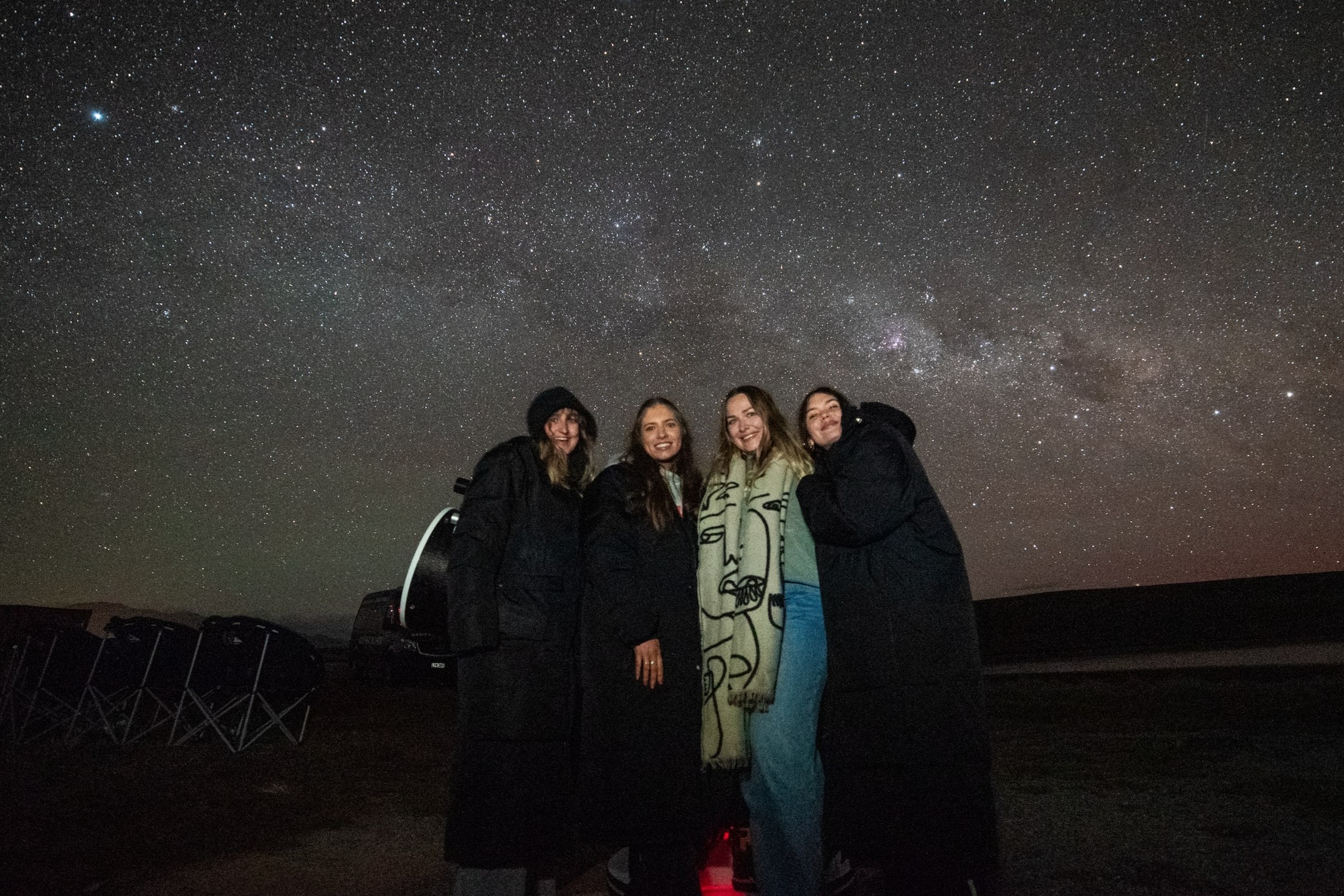 您可以舒适地坐在我们的高级月球椅上欣赏夜空的奇观,同时享用一盘小吃和一杯热饮保暖。尽情享受我们的终极观星体验吧!