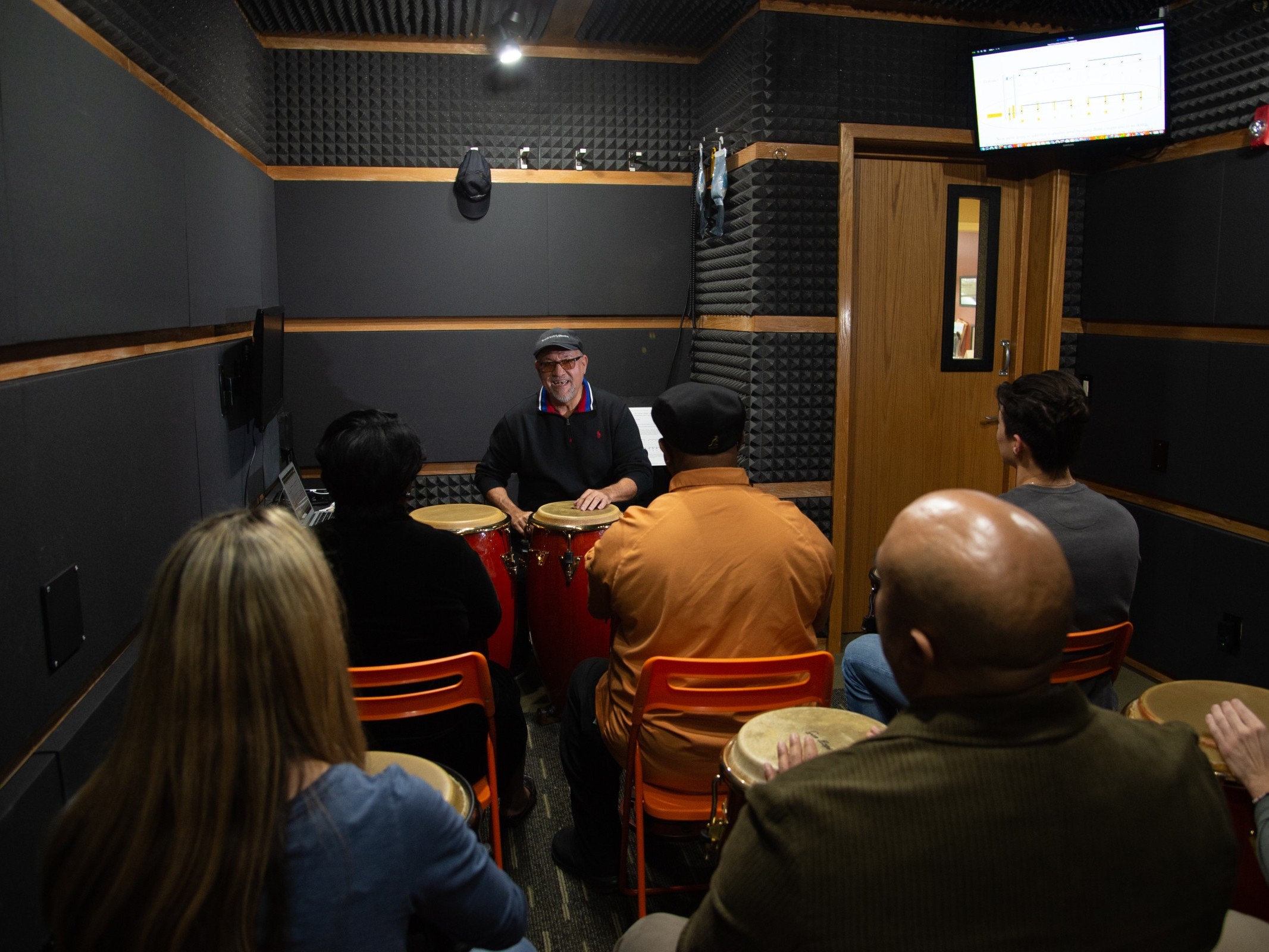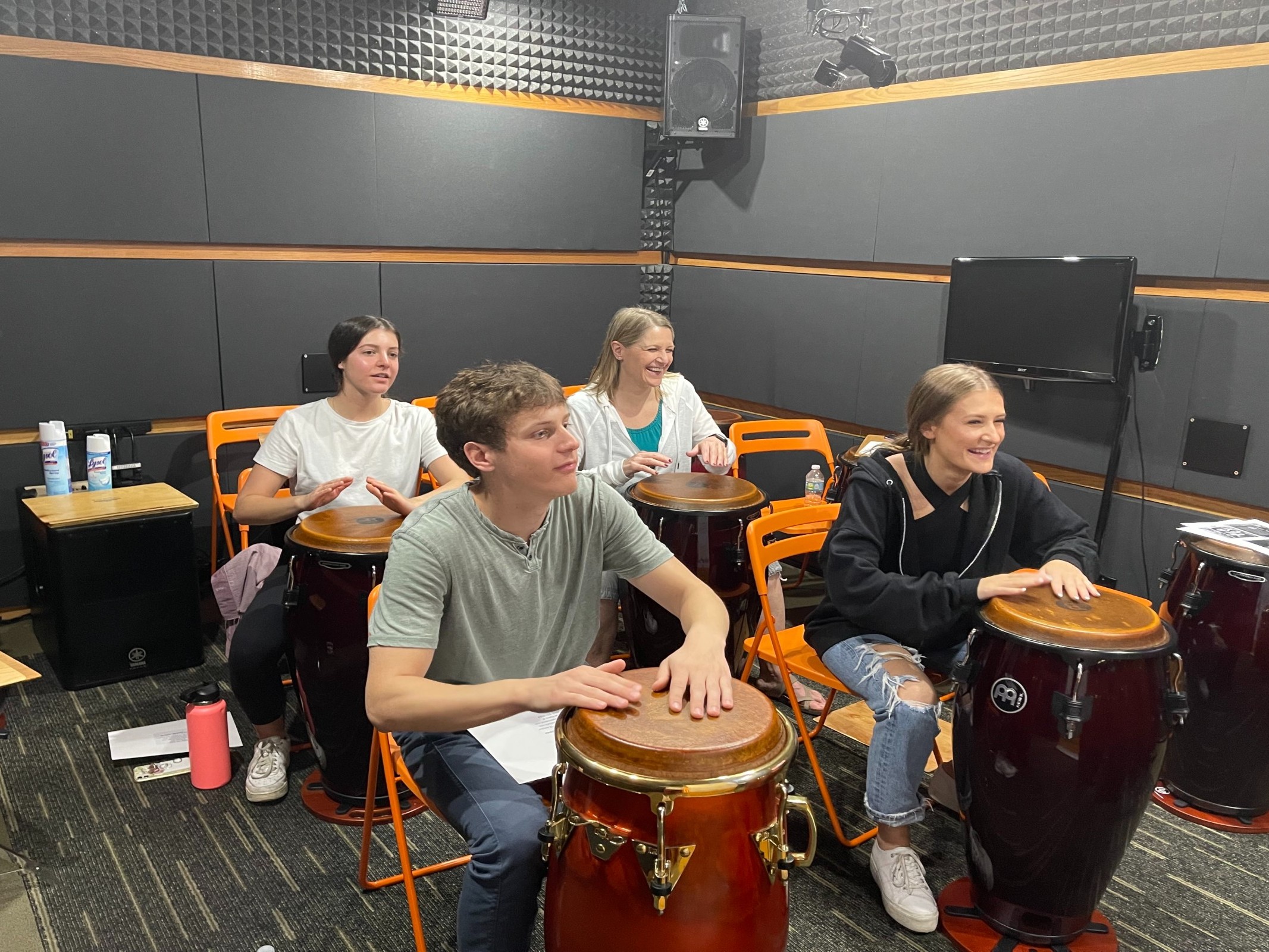 体验一群人一起愉快地学习康加鼓的兴奋之情