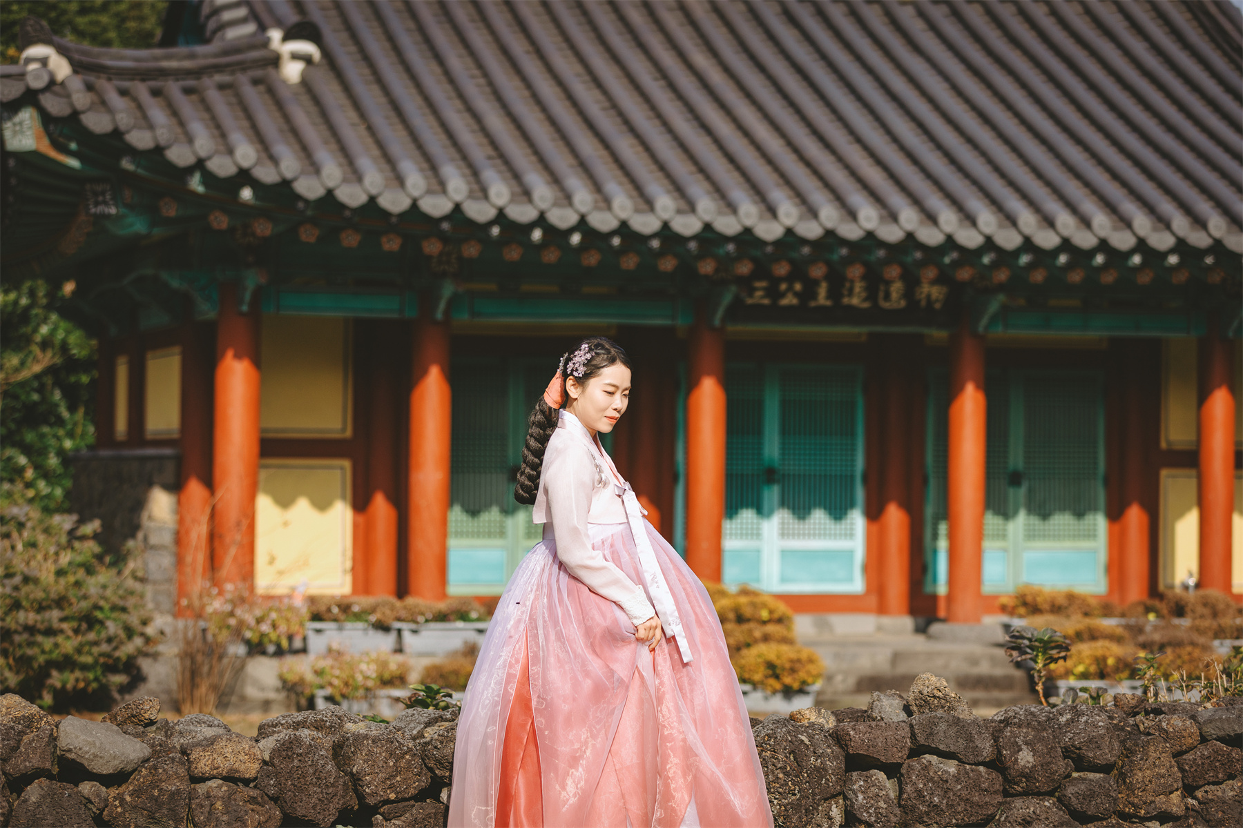 我们的韩服体验工作室位于济州岛东部,紧邻标志性的城山日出峰和涉地可支。我们提供独特的机会,让您穿上精致的传统韩服,在济州岛最令人叹为观止的一些地方捕捉难忘的时刻。无论您选择探索壮观的海岸悬崖、宁静的花园还是生机勃勃的田野,我们的专业摄影服务都能确保您拍摄出将文化与自然完美融合的绝美韩服肖像。此外,附近的传统韩屋花园为拍摄优雅而永恒的照片提供了完美的环境。与我们一起沉浸在韩国丰富的文化遗产中吧!
