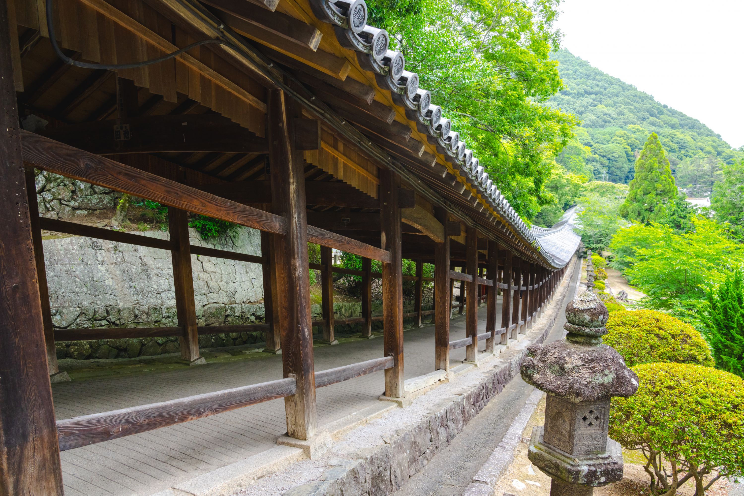 吉备津神社内有 360公尺长的回廊,营造出庄严神秘的氛围,传说中的「鬼退治」故事更增添其历史与文化魅力